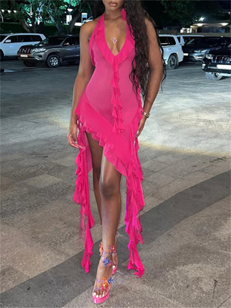 FashionSierra -3D Flower Patchwork Sleeveless V-neck Mini Dress