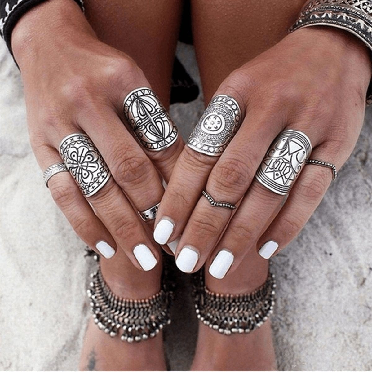 About: Add ethnic vibes to your outfit with our Ancient Goddess Plated Ring Set. Featuring four different rings with unique patterns making every one of them oh so special! Perfect to combine with our bohemian necklaces. bracelets and earrings.