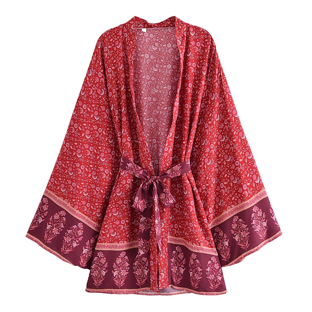 The Aneesa Boho Kimono is one of the most beautiful pieces you will own. Featuring square statement sleeves. a detachable belt. and side slits. that will elevate any outfit. From chilling poolside or venturing out to explore the world.