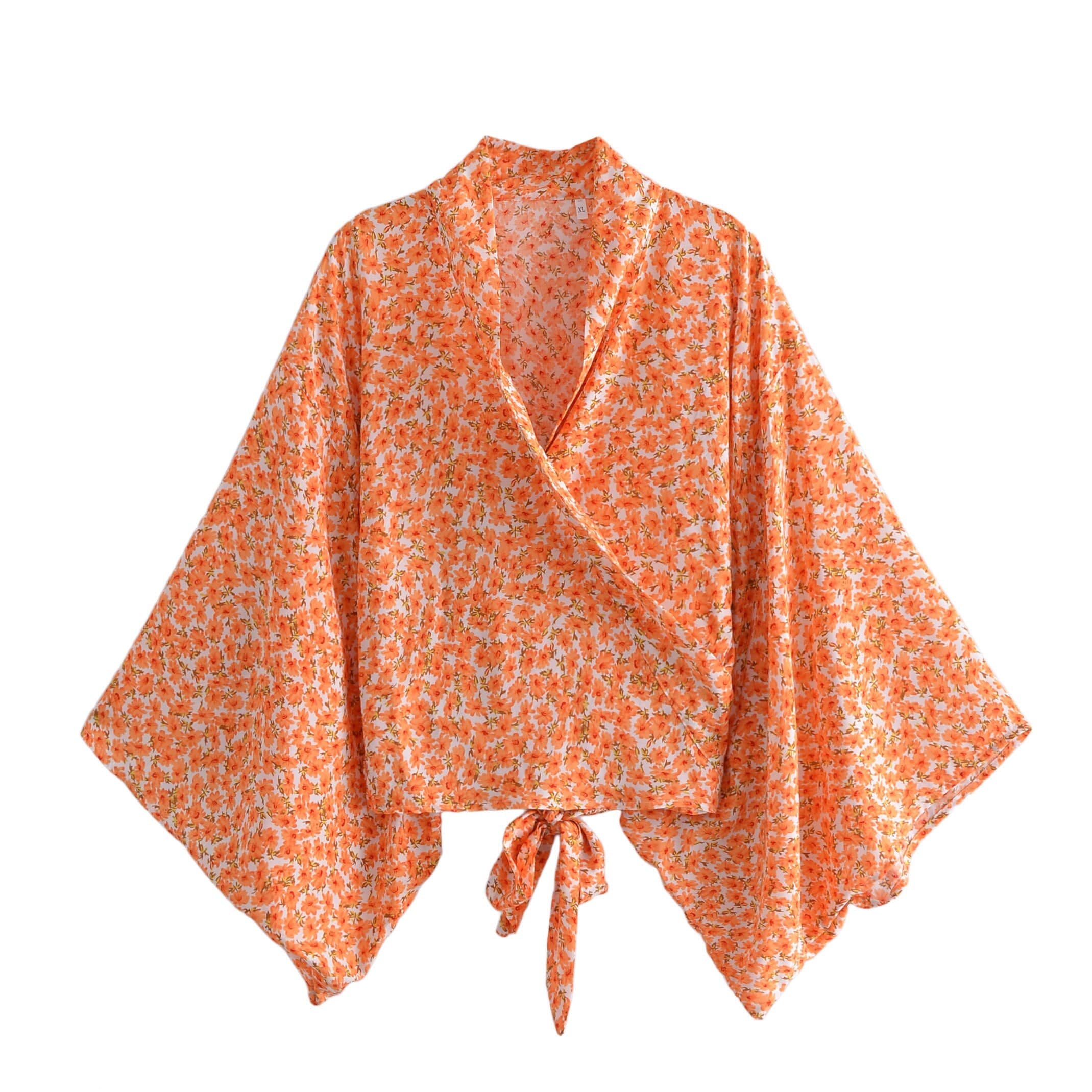Printed with delicate florals. this airy Anete Short Boho Kimono is designed to tie at the waist with a short silhouette that shows off your best high-rise jeans. Wear it over a tank and your favorite Lucky denim.