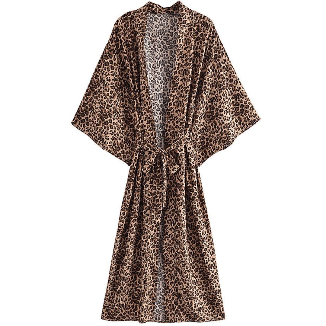 This vivid kimono is featured in a lightweight construction and longline silhouette with an animal print pattern. drop shoulder sleeves. and an open front. and is sure to turn heads.
