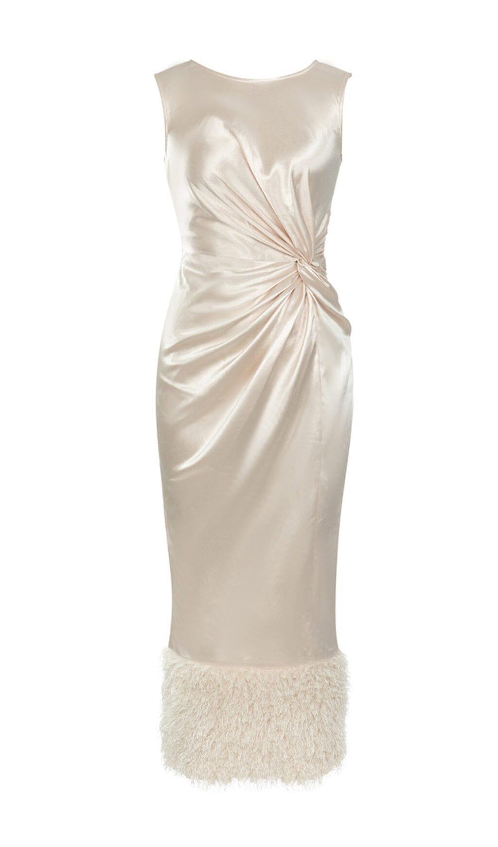 Inspire elegance and grace with the Apricot Sleeveless Pleated Feather Hip Dress. This luxurious sleeveless dress is crafted from fine pleats and intricate feathers for an intricate. exclusive look. With an apricot hue and a slim hip fit. this dress is perfect for any special occasion.