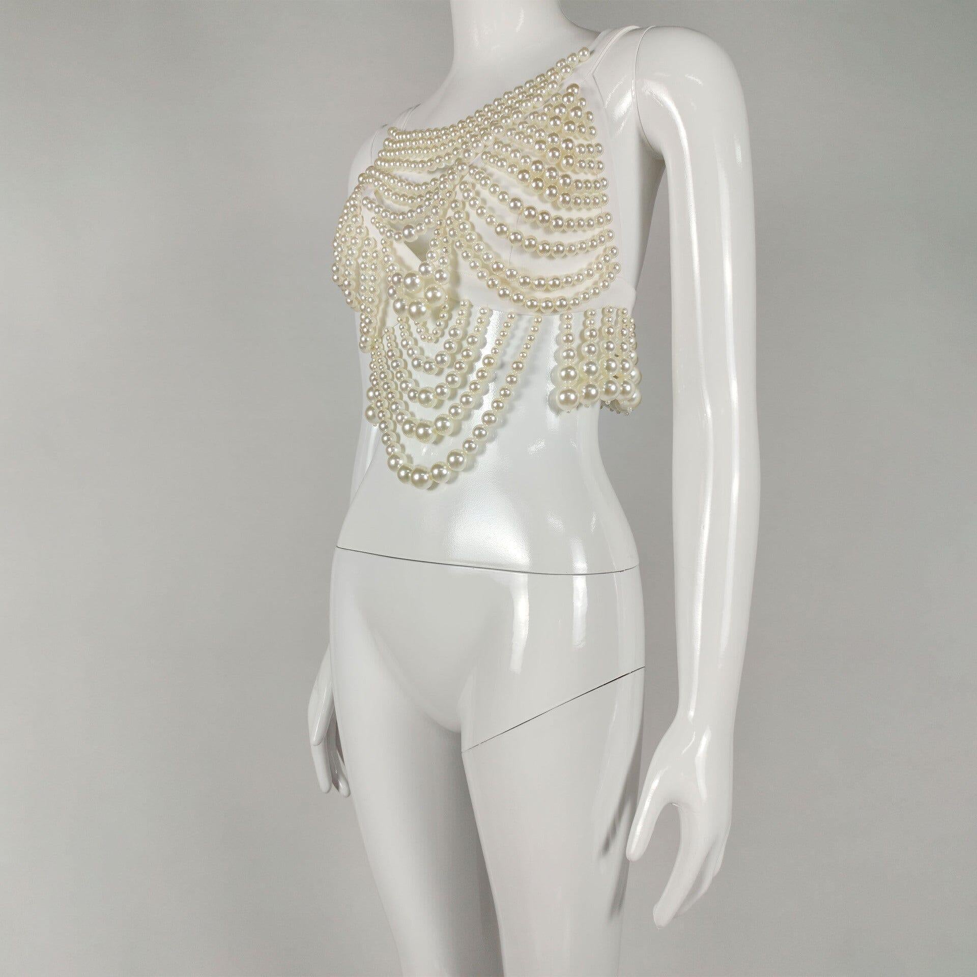 Elevate your wardrobe with the Pearl Embellished Bustier Top. Its combination of luxury. femininity. and impeccable design make it a must-have piece. Whether you're attending a special event or adding a touch of elegance to your everyday outfits. this top will make you look and feel confident and stylish.