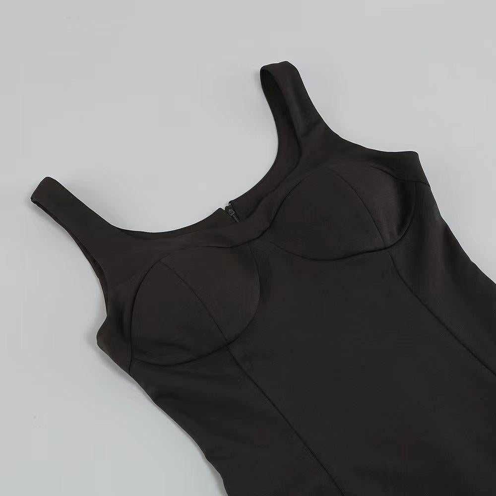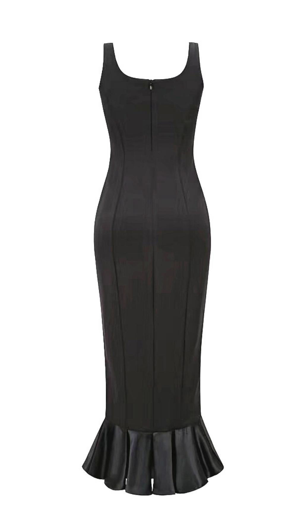 Our midi dresses have an elegant and glamorous feel in elegant black tones. The design of folds is its most distinctive place. The skirt is slightly slit. adding a touch of allure to the dress.