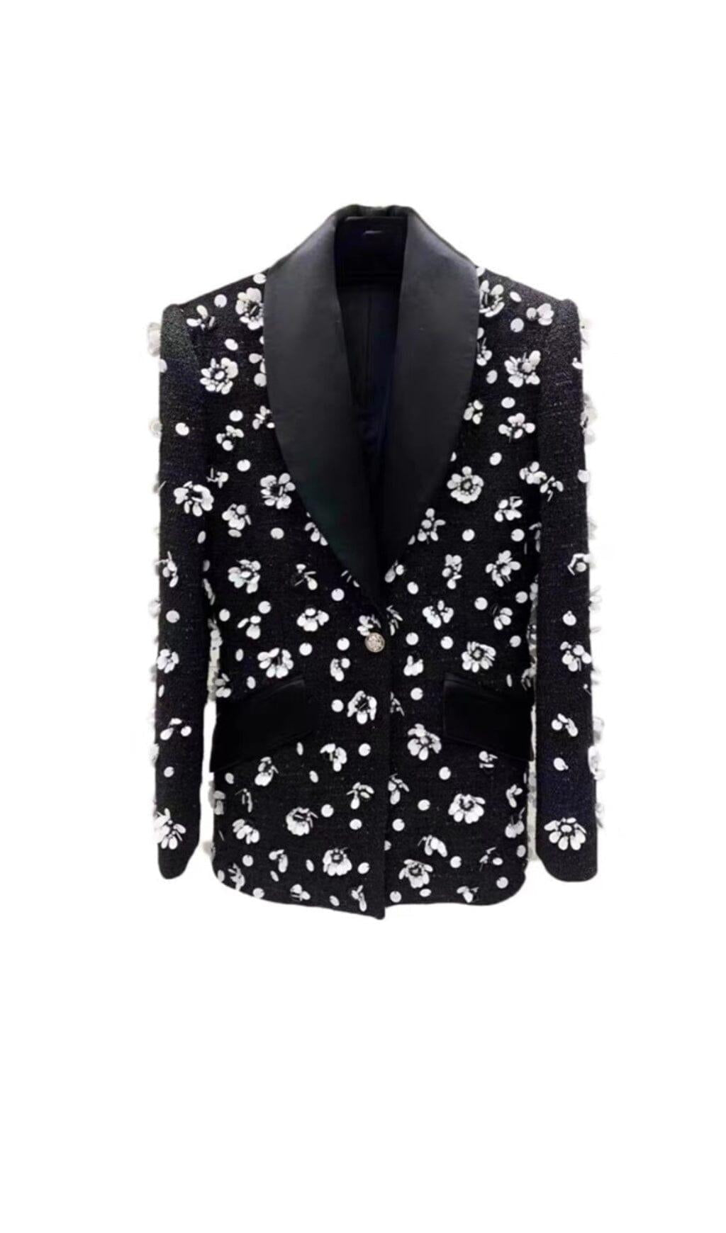 Make a statement this season with this amazing Black 3D Bead Floral Jacket! Featuring intricate floral beading on a black background. this unique jacket is sure to turn heads! This one-of-a-kind look is sure to make heads spin!