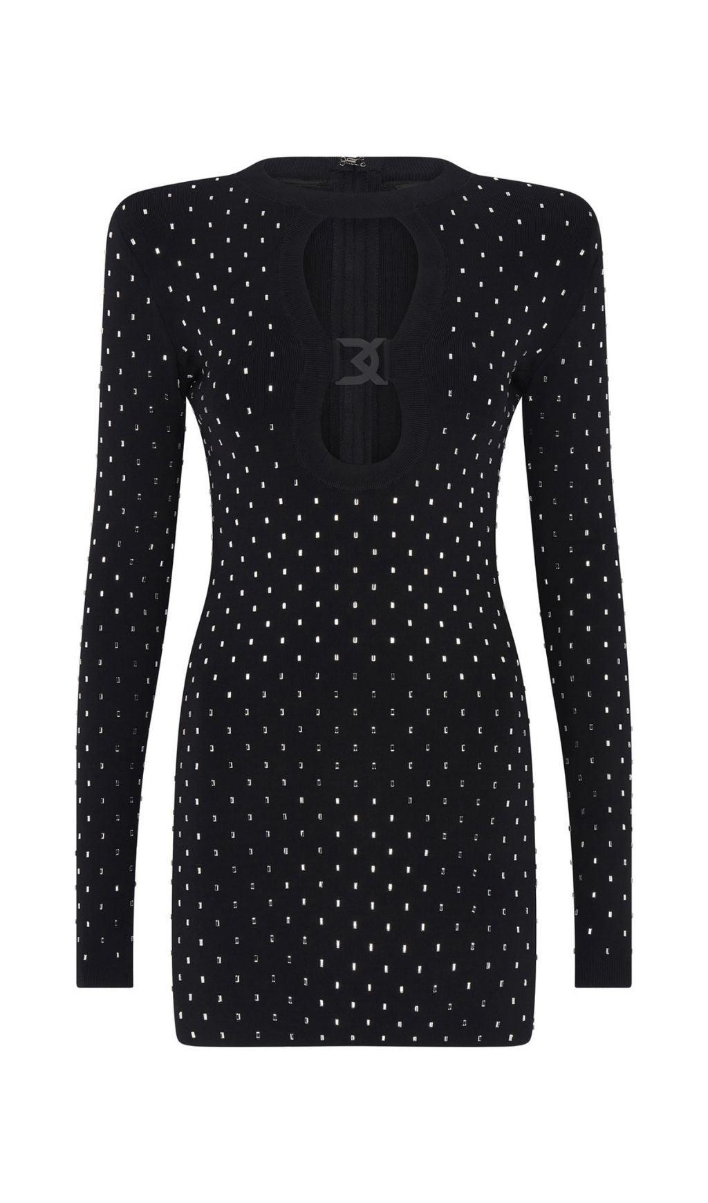 Get ready to turn heads in this stunning Black Crystal Plunge Mini Dress! Whether you're heading out for a romantic date night. attending a wedding. or going to a glamorous function or event. this dress is the perfect choice.