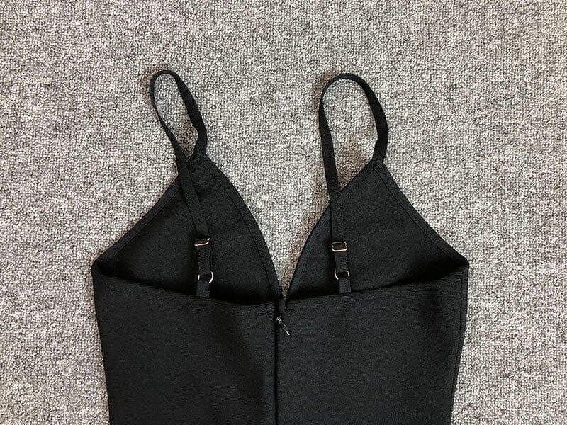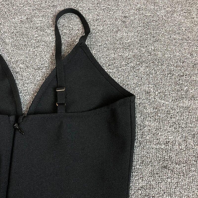 "Shine bright like a diamond in this black. figure-hugging mini dress. Perfect for a night out. the diamond embellishments add a touch of sparkle to your look. Be the center of attention with this unique bandage-style dress. (Warning: may cause dress envy)."