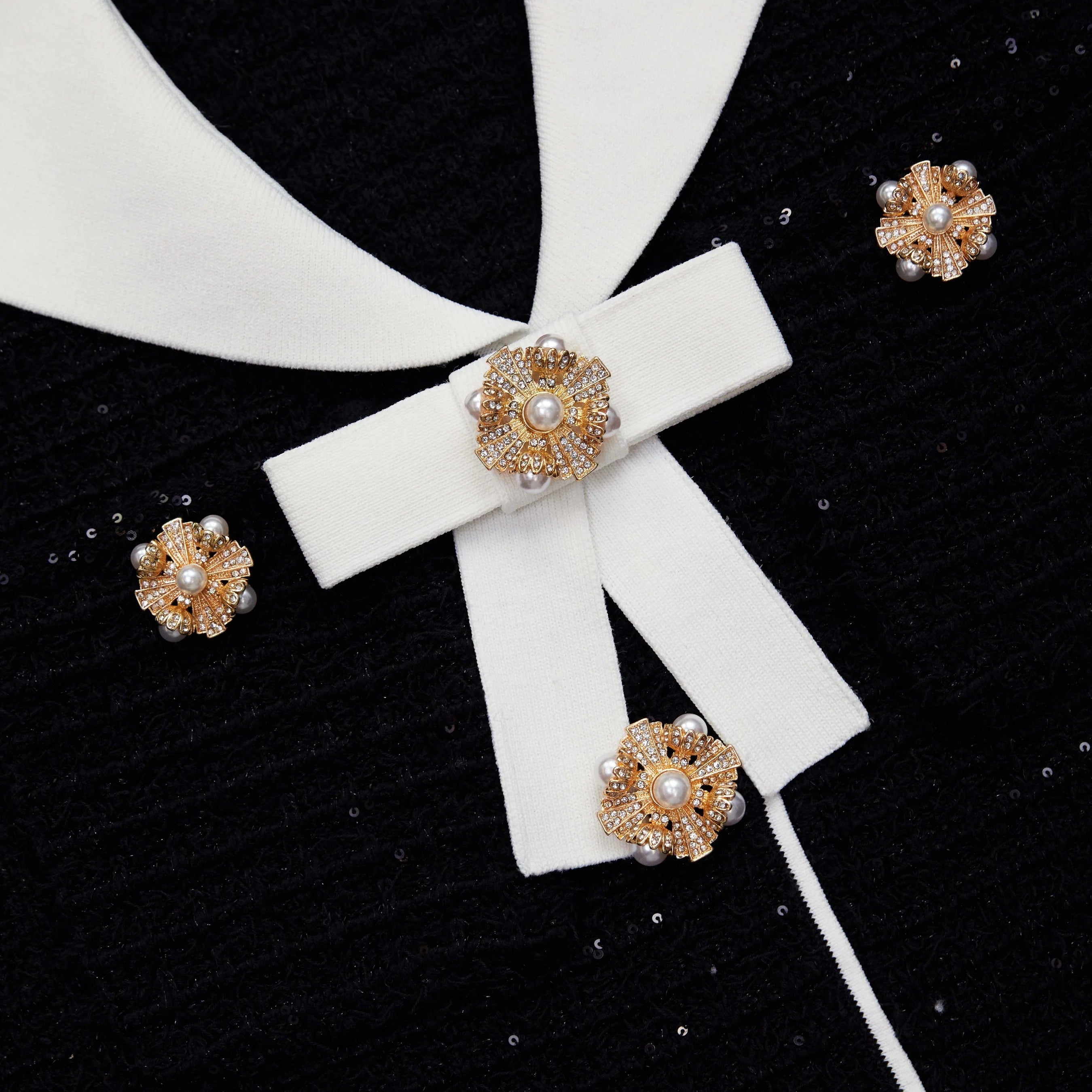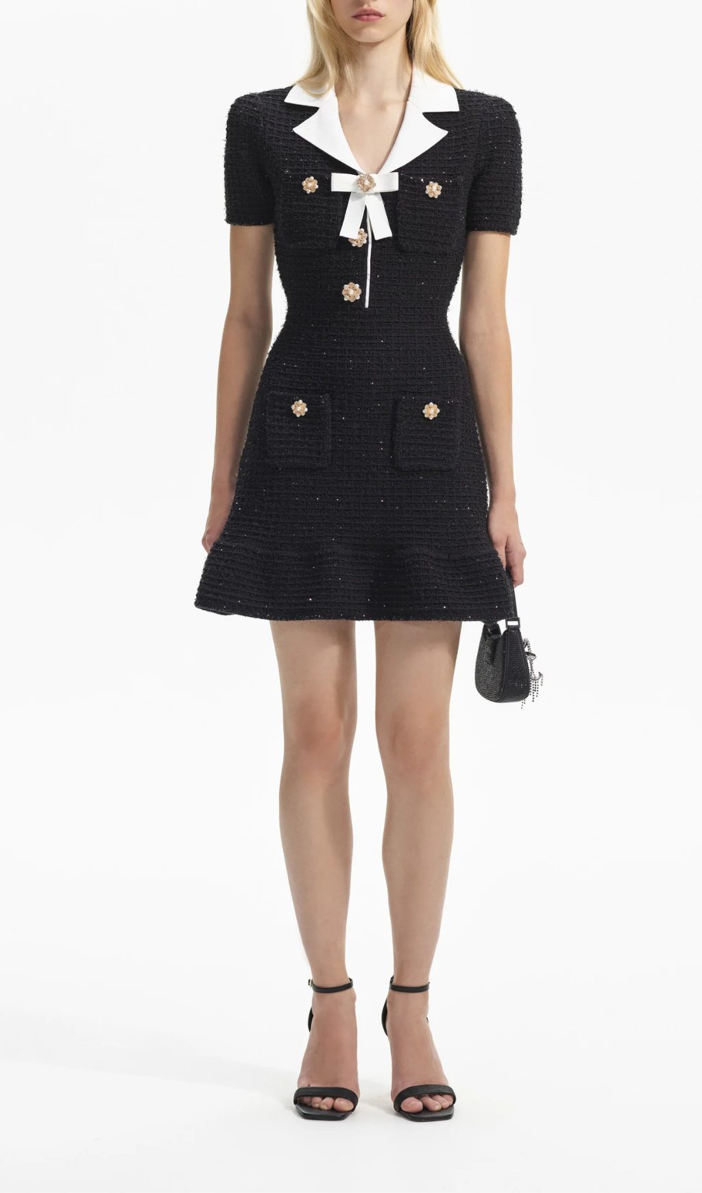With its sleek black knit fabric and playful bow detail. this dress is the perfect combination of chic and fun. You'll be the life of the party in this mini dress that's both comfortable and stylish.