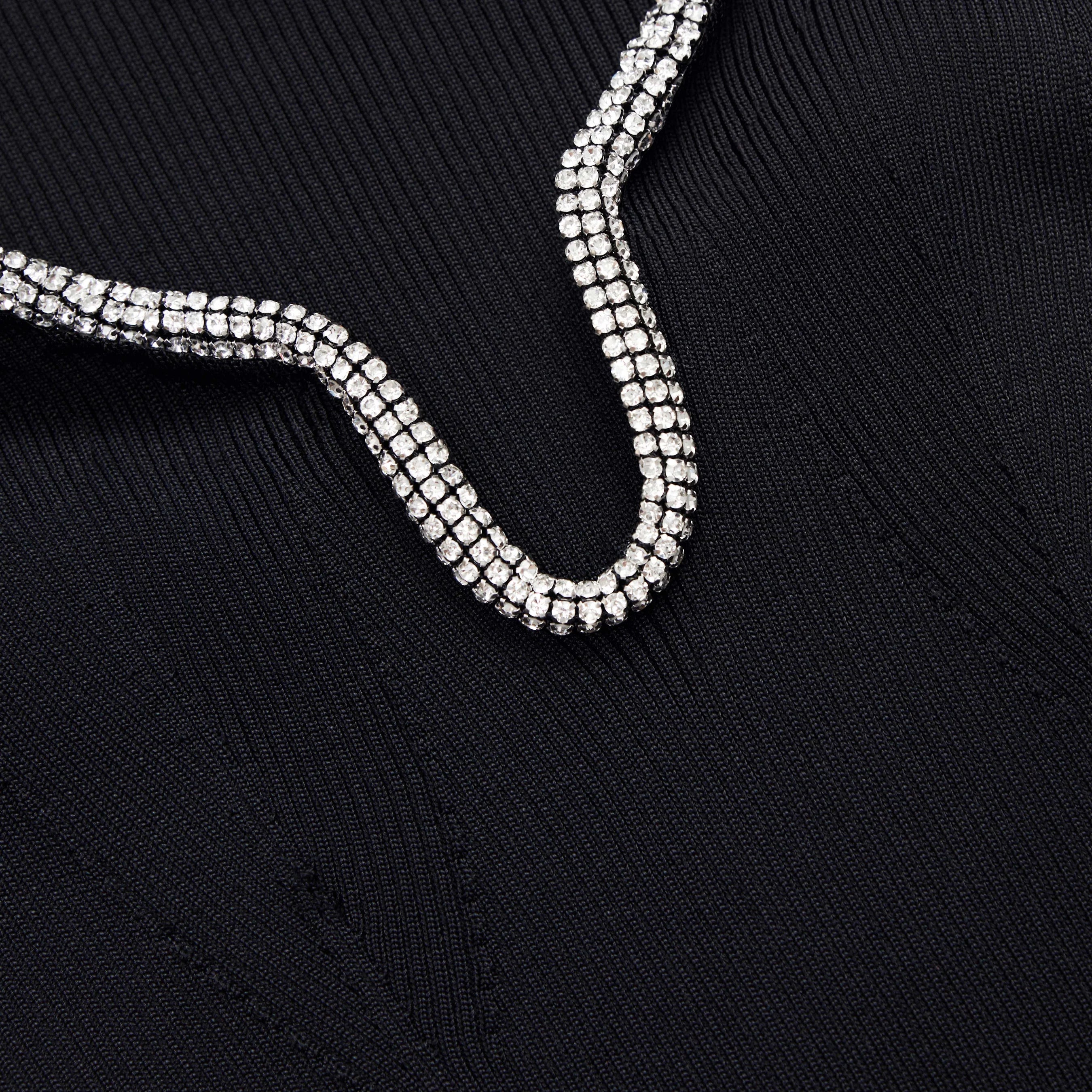 Its chic design and shimmering diamante trim elevate any outfit. With its comfortable knit material. you'll look effortlessly stylish while feeling cozy. Add a touch of glam to your wardrobe with this top!