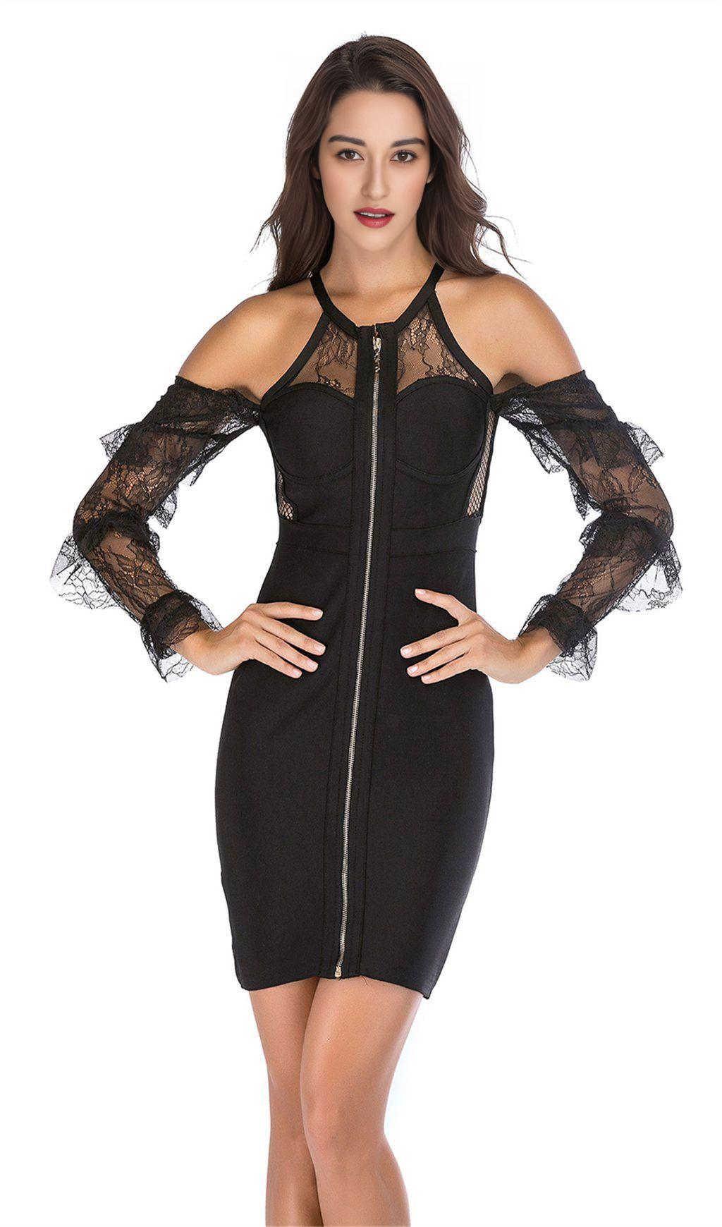 This dress is made from high-quality stretch satin and lace. ensuring a comfortable and flattering fit. It is fully lined for added comfort and coverage.