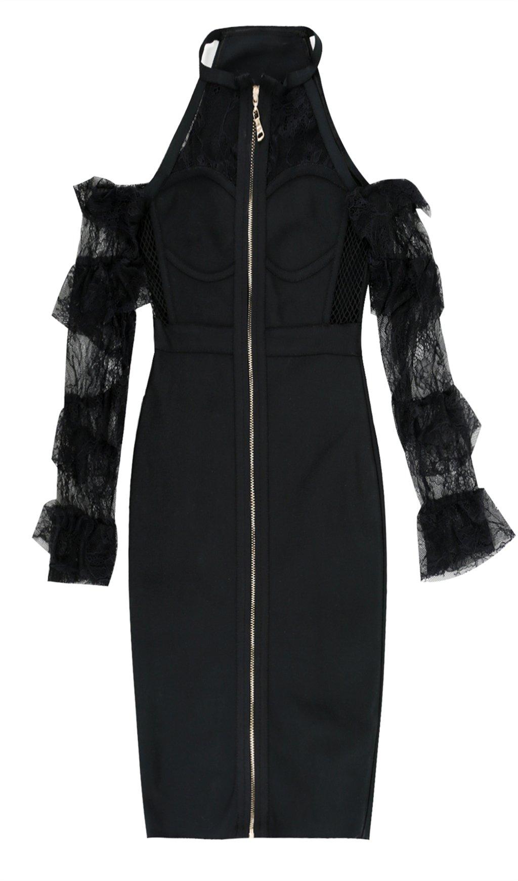 'Dominique' is a stunning sheath dress that combines the fierce allure of black satin with the delicate beauty of sheer lace. It is crafted from our ultra luxe stretch satin and features a built-in corset to accentuate your curves. The bodice is properly boned down to the waist at the front and back. providing structure and support. The bodice is lined in a textured stretch woven fabric for a no-slip effect. and the skirt is lined with stretch silky satin for a seamless finish.