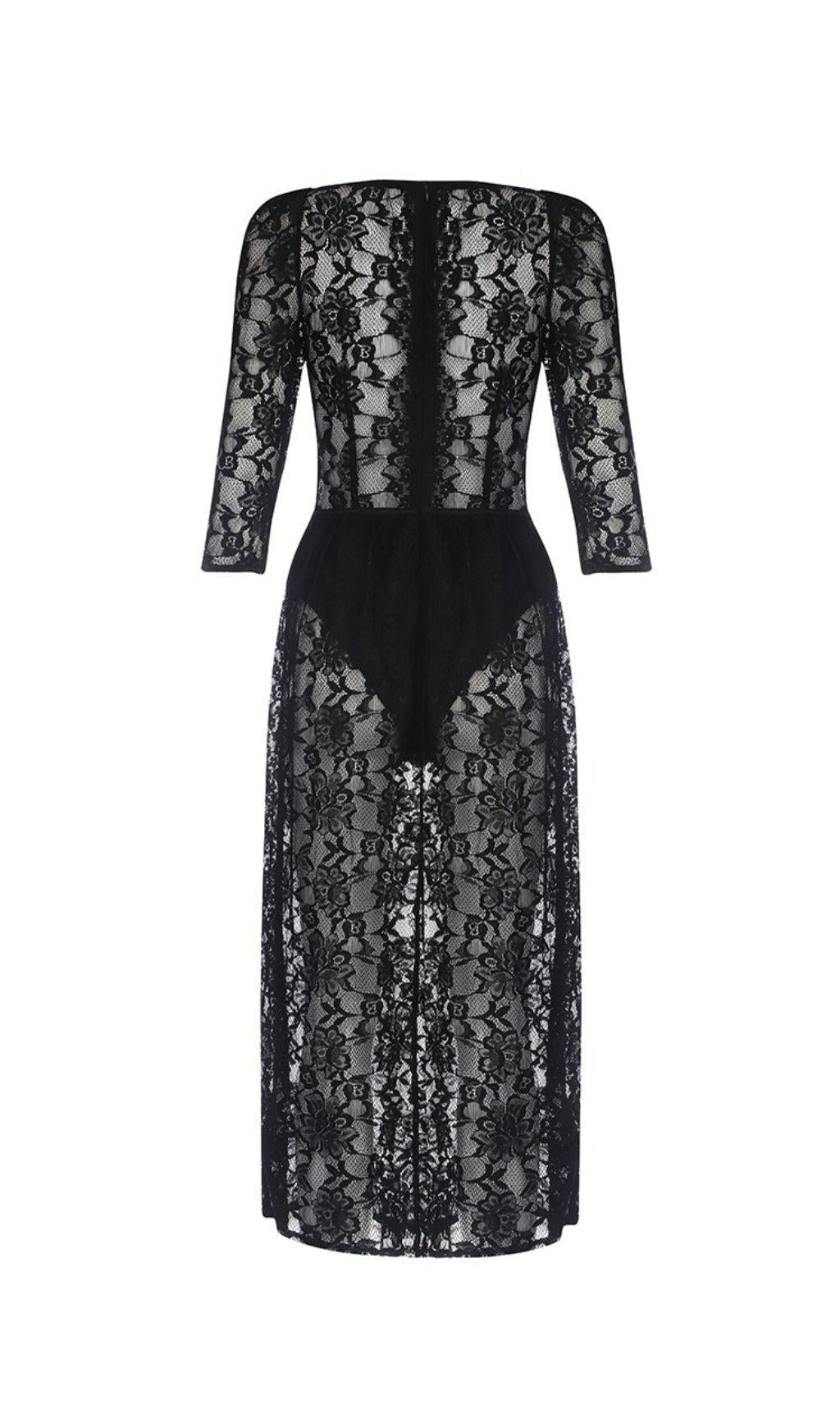 Turn heads and make a statement in our Black Lace Split Maxi Dress. This stunning dress is perfect for romantic date nights. proms. wedding receptions. and glamorous functions and events. With its elegant design and attention to detail. it's sure to make you feel like the belle of the ball.