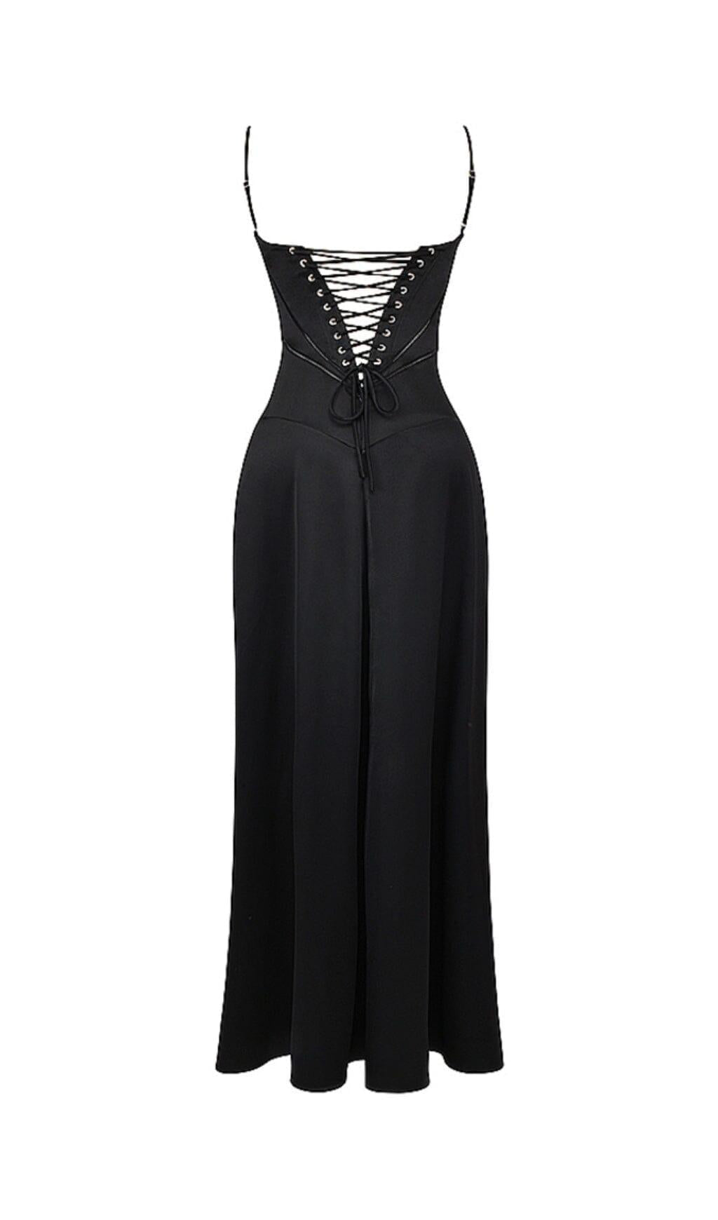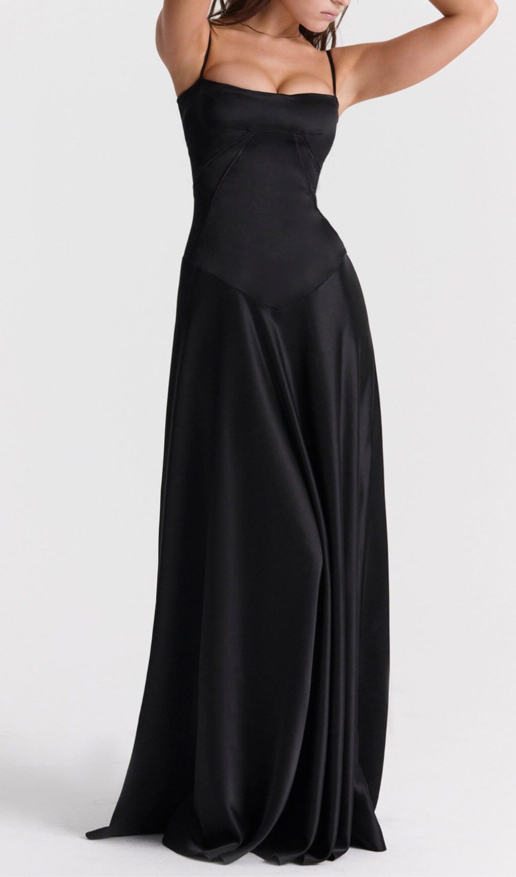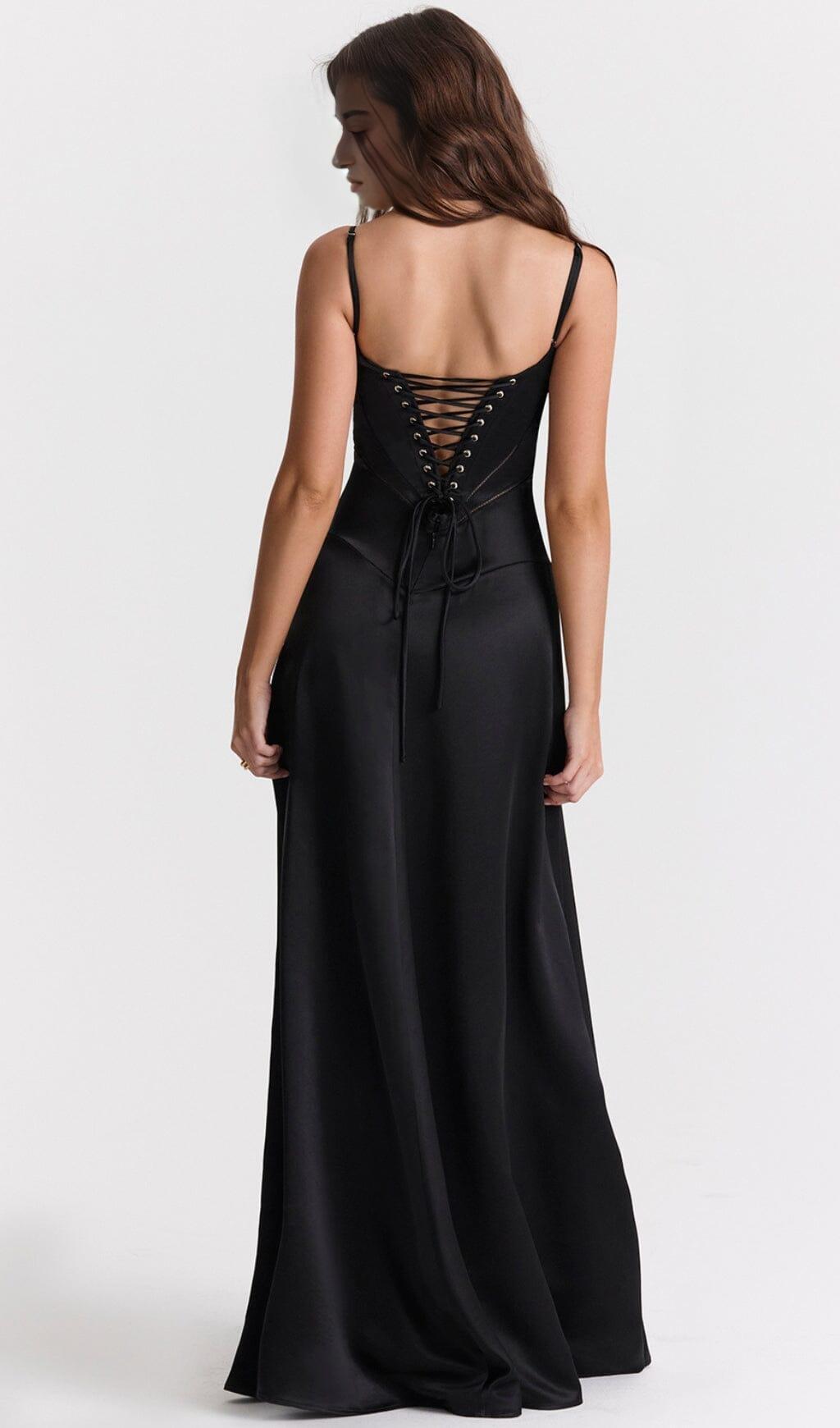 Introducing our most elegant dress yet - the Black Lace Up Maxi Dress. This dress is the epitome of black tie dressing. perfect for those special occasions where you want to make a statement. Made from luxurious black silky satin. it offers a fluid drape that will have you feeling like royalty.