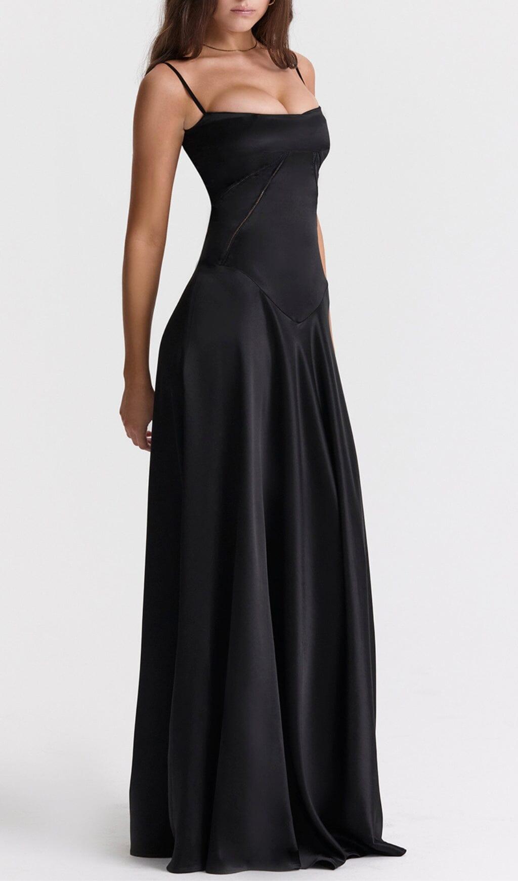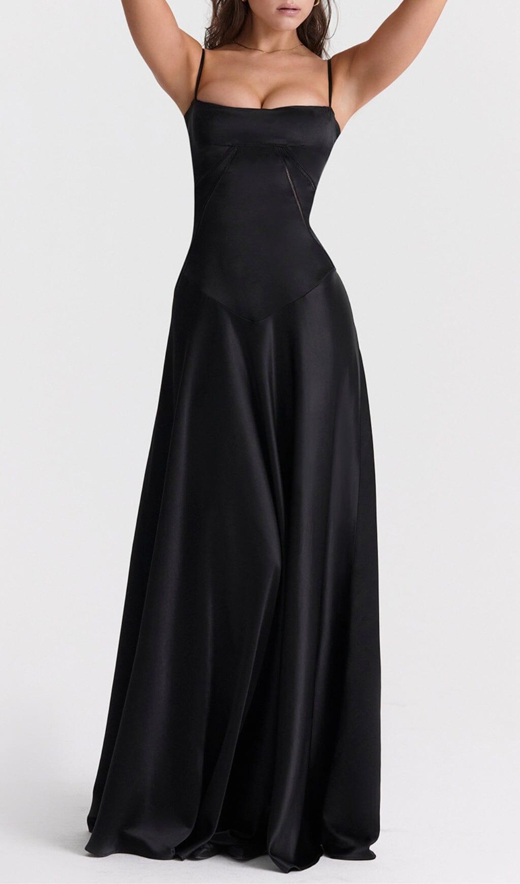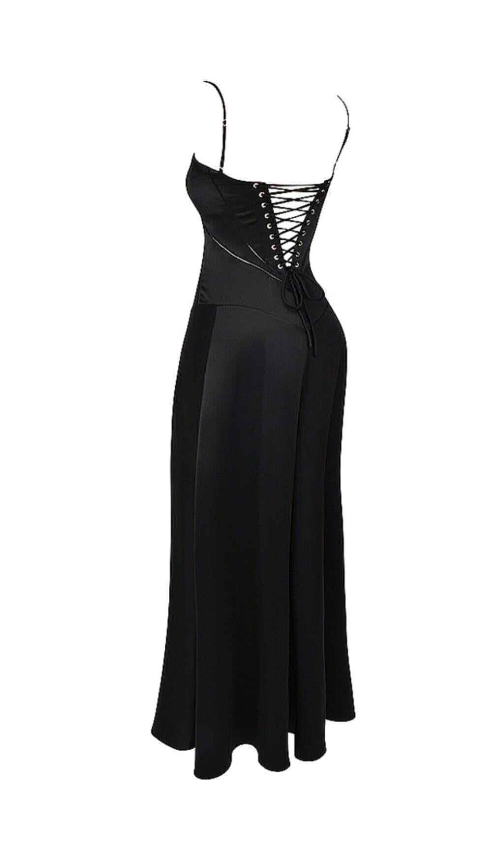 Introducing our most elegant dress yet - the Black Lace Up Maxi Dress. This dress is the epitome of black tie dressing. perfect for those special occasions where you want to make a statement. Made from luxurious black silky satin. it offers a fluid drape that will have you feeling like royalty.