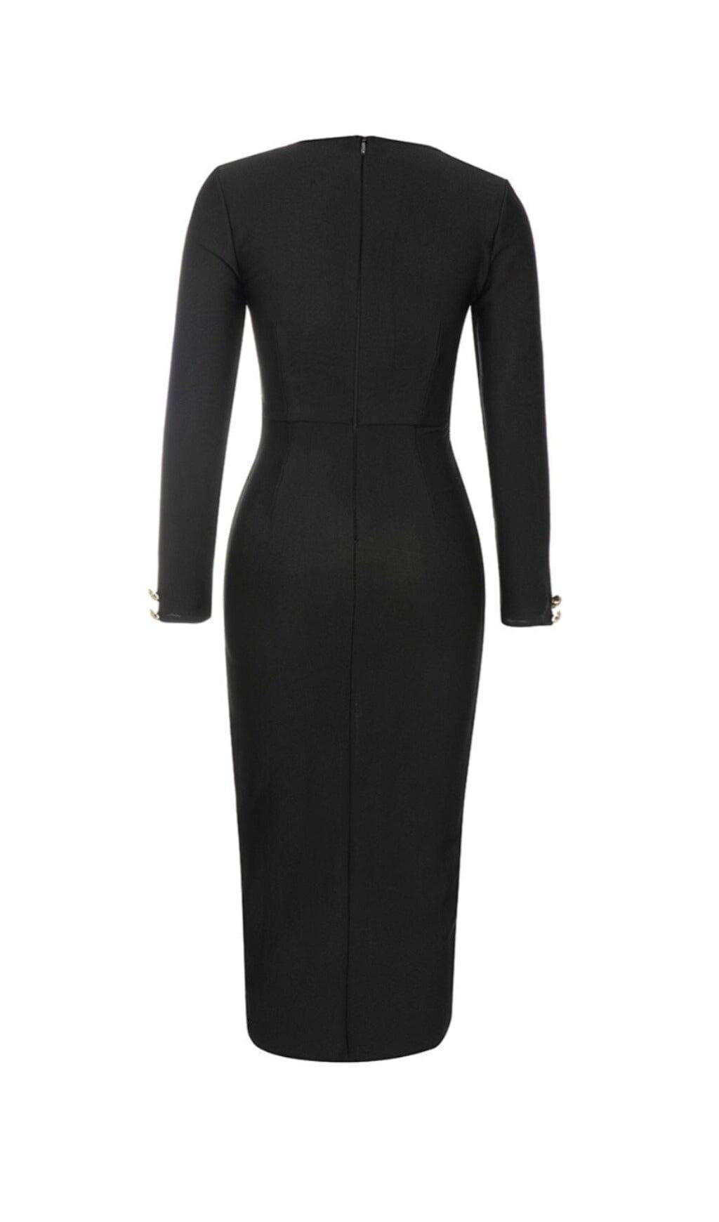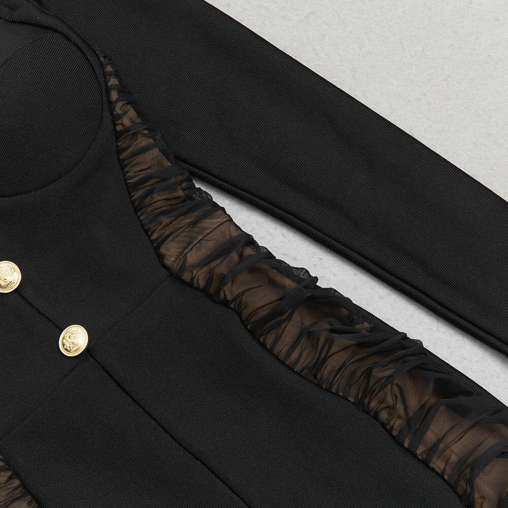 Make a statement in this daringly stylish BLACK MESH PATCHWORK BUTTON-EMBELLISHED DRESS. It features a unique patchwork design with a bold blend of textures. and subtle finishes with button embellishments. Take a risk and stand out from the crowd!