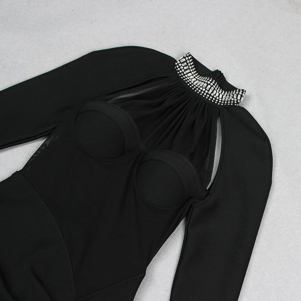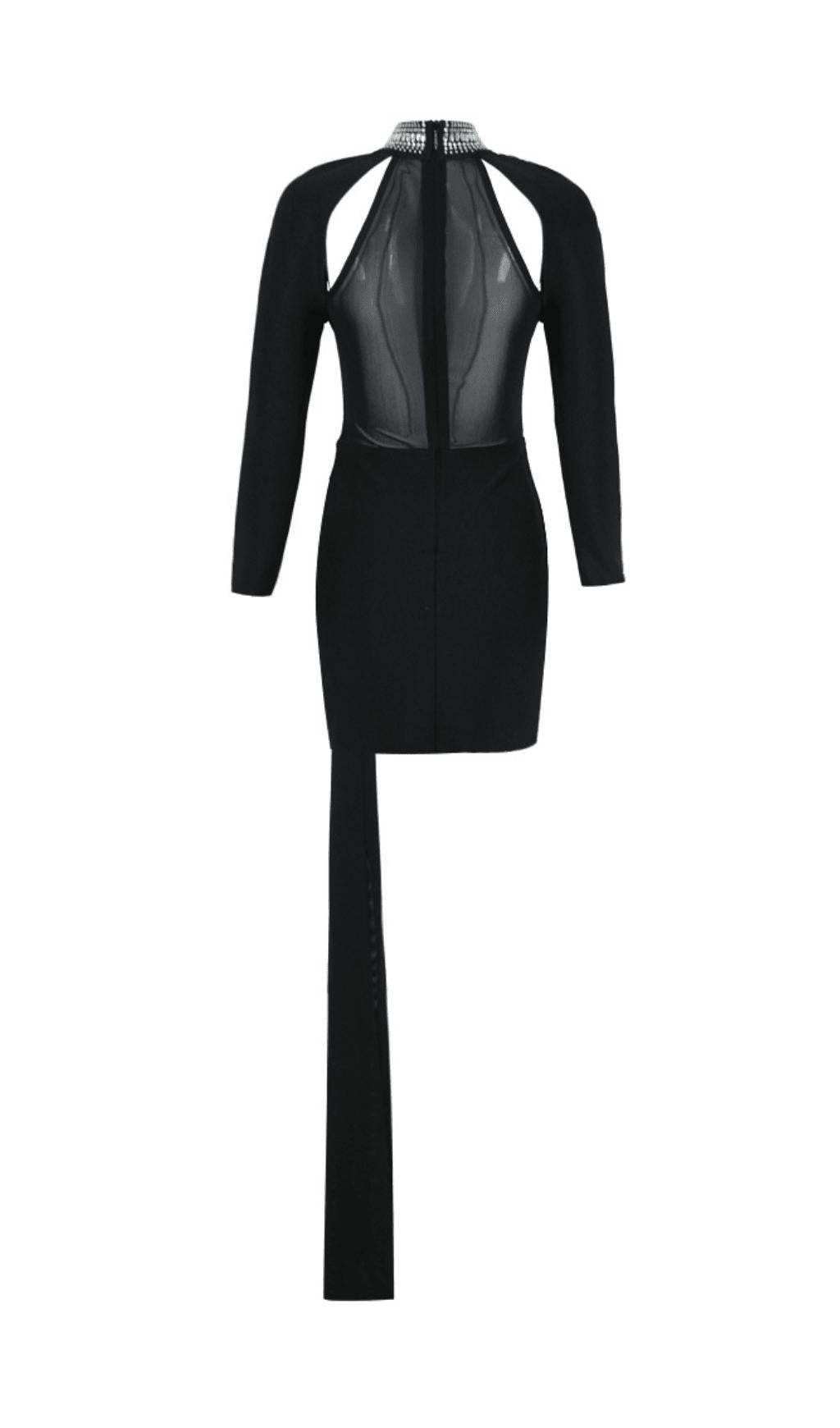 Look absolutely stunning in this dress! Featuring a sheer fabric. halter neckline. and crystal embellishments. you'll be strutting your stuff in style. Perfect for a special occasion. you're sure to turn heads! Get ready to sparkle and shine!