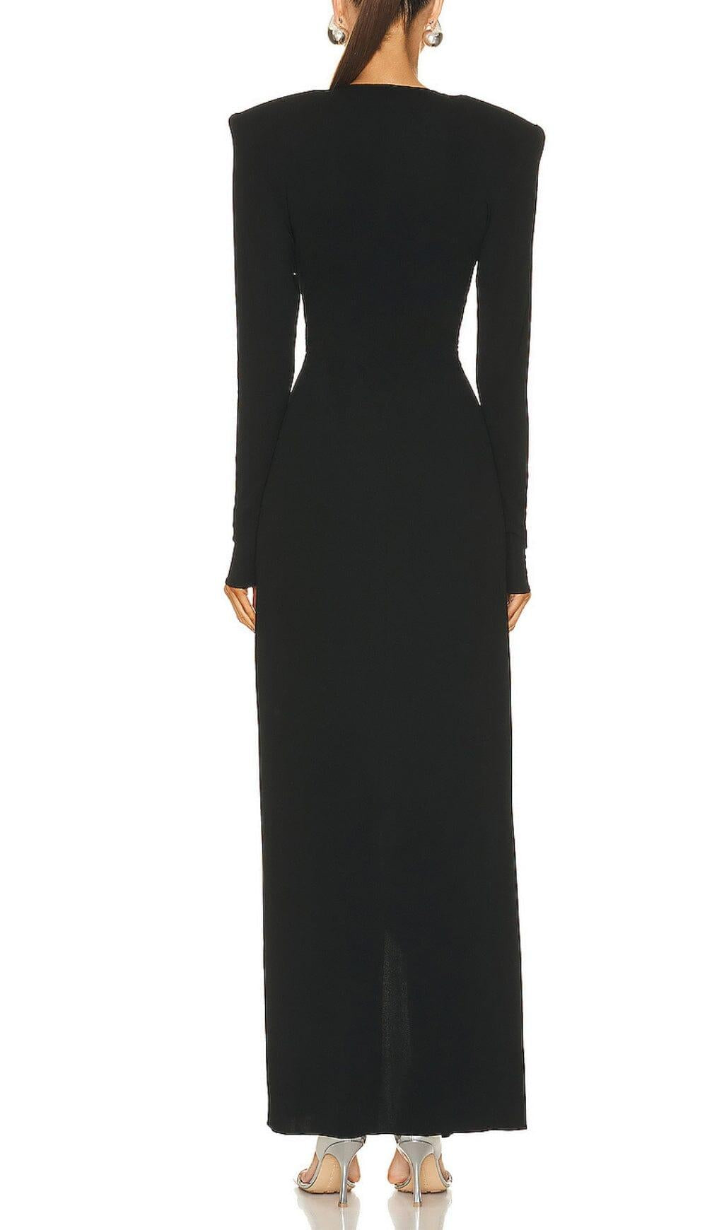 Wow your friends in this edgy and unique black maxi dress! Featuring a v-neck. split-thigh. and maxi length. you'll turn heads with this stylish look. Show off your daring side with this dress for a night out you won't forget!