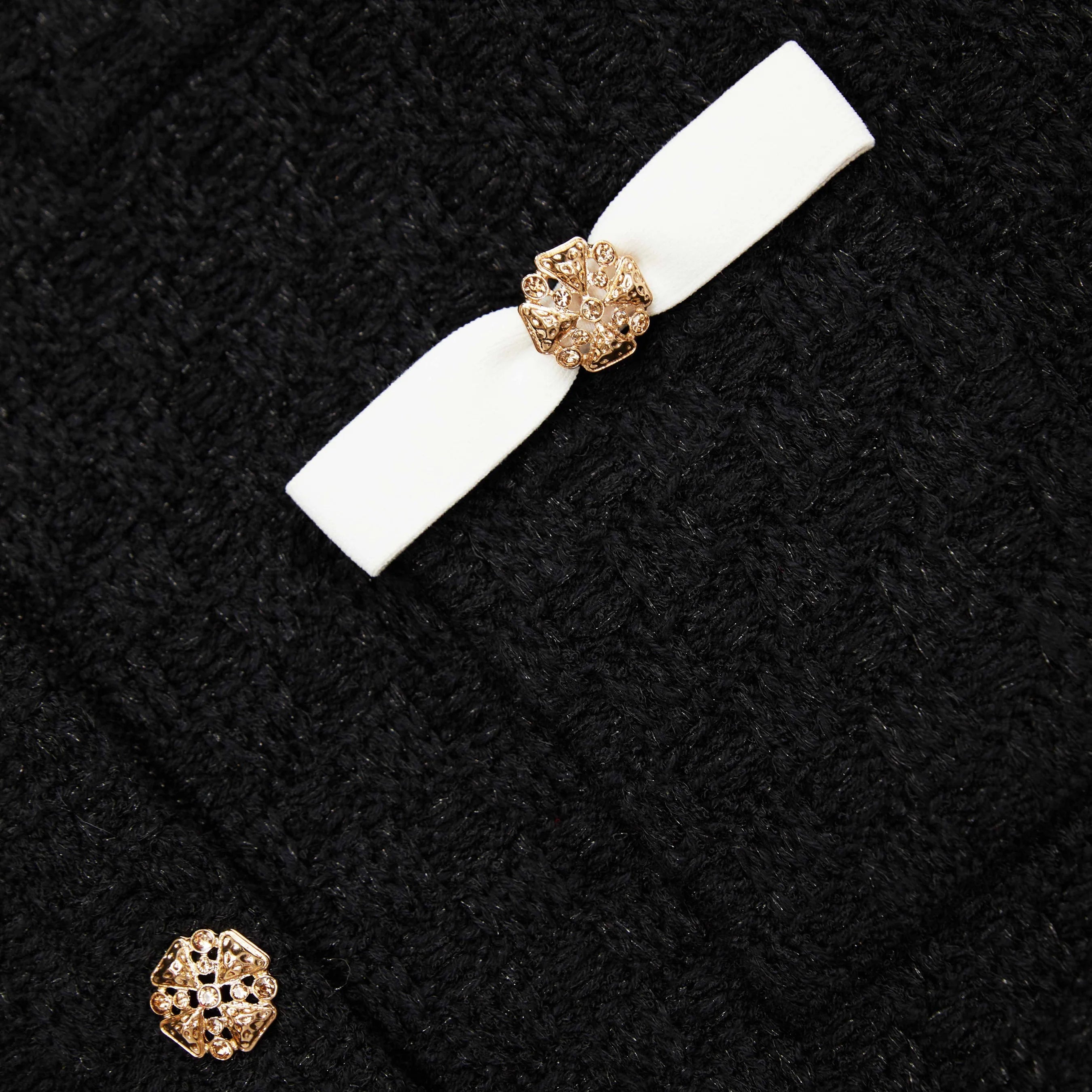Made with a unique black weave design. this cardigan adds a touch of edgy sophistication to your wardrobe. Stay cozy and stand out with this must-have piece.