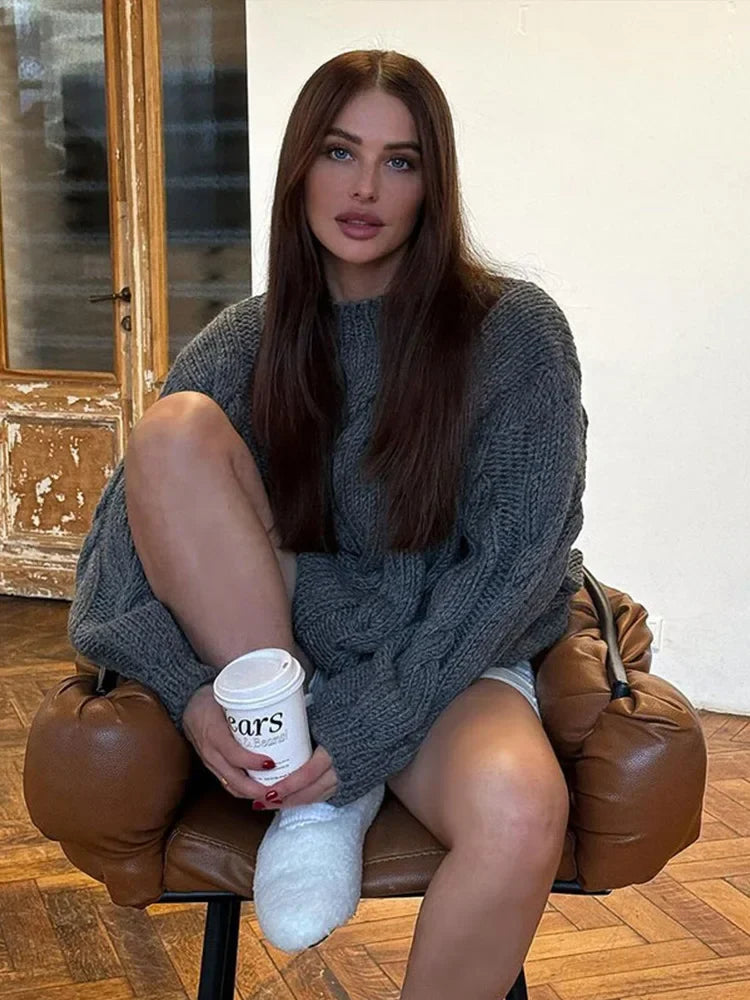 Hign-concerned Chemical : None Release Date : Autumn 2024 Craft of Weaving : Knit Pattern : Loose-Fitting Season : Autumn/Winter Thickness : Thick Pattern Type : Striped Gender : Women Sleeve Length(cm) : Full Style : Office Lady