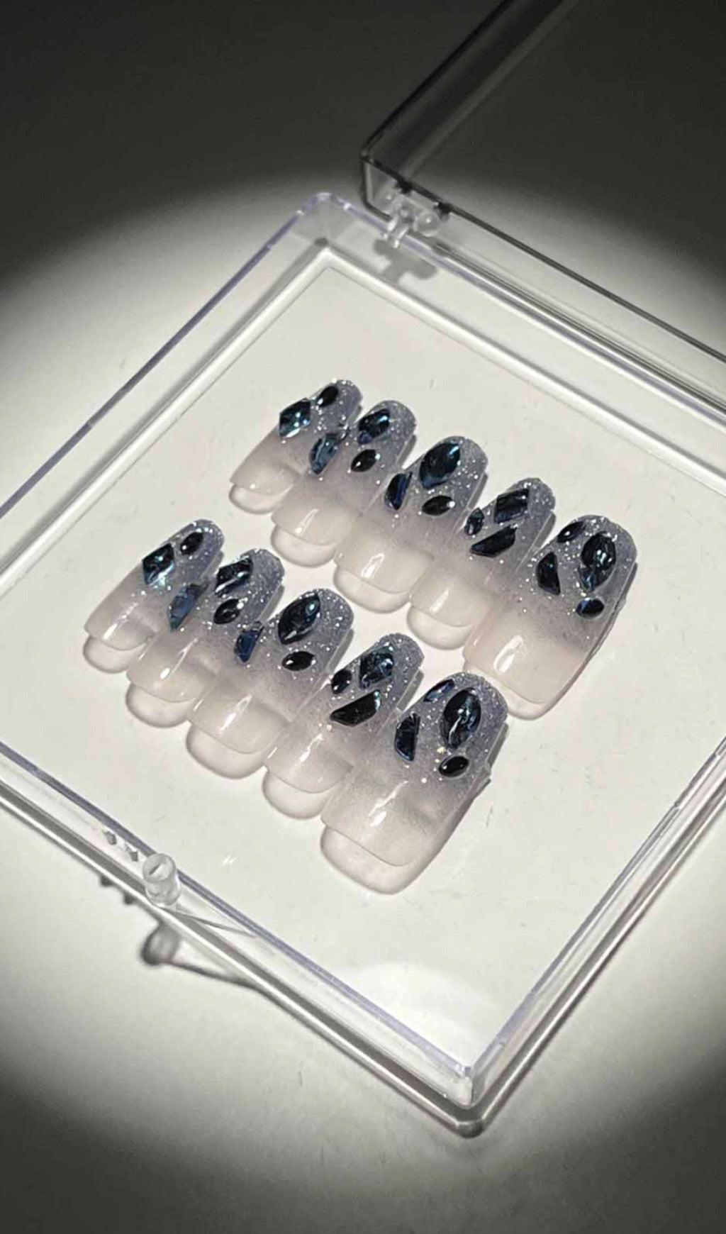 The Blue Crystal Glitter design is truly mesmerizing. The flash diamond lake blue color combined with the glitter creates a stunning effect that will make your nails the center of attention. Stand out from the crowd with these unique and beautiful press-ons.