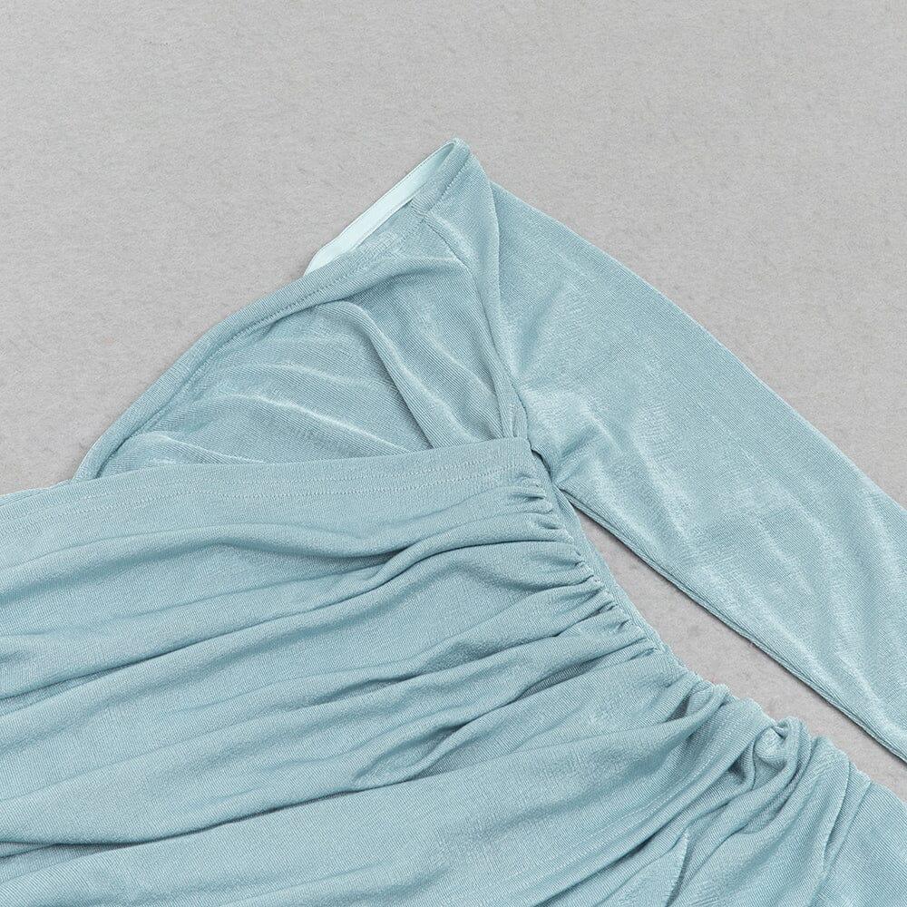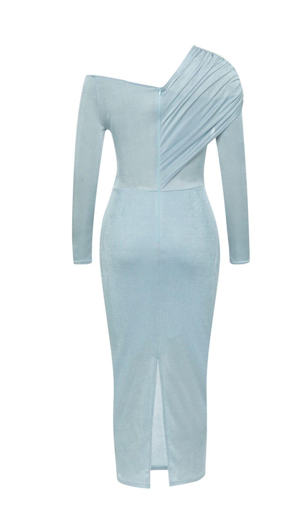Look your best in this daring blue one-shoulder pleated bandage midi dress. Crafted from high quality bandage material. this show-stopping look will have you turning heads and stealing the spotlight! Perfect for any special occasion or night out. Vamp up your style and make an unforgettable impression.