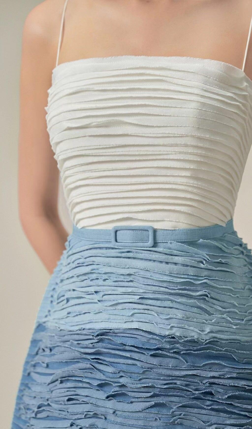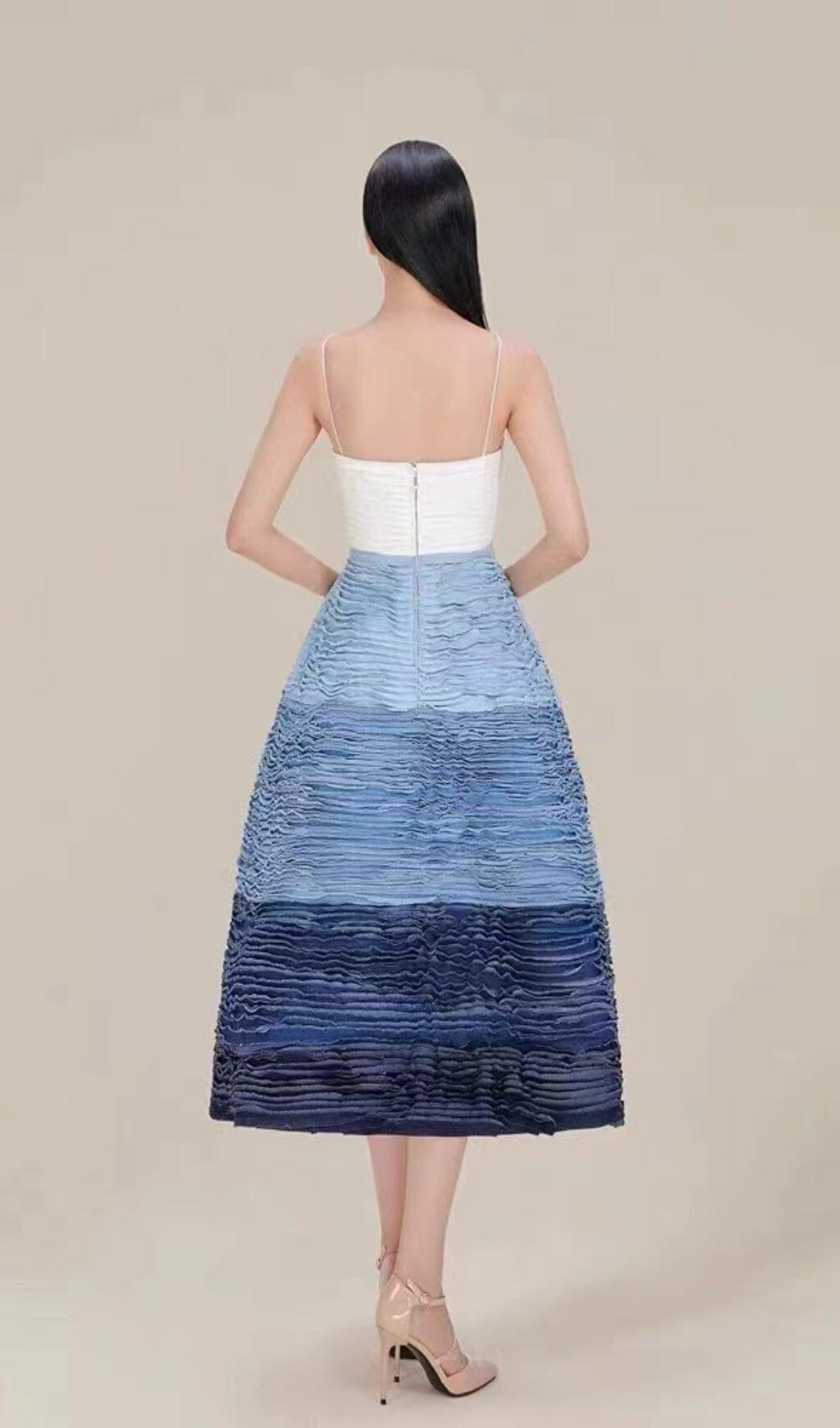 BLUE RIPPLE SUSPENDER MIDI DRESS