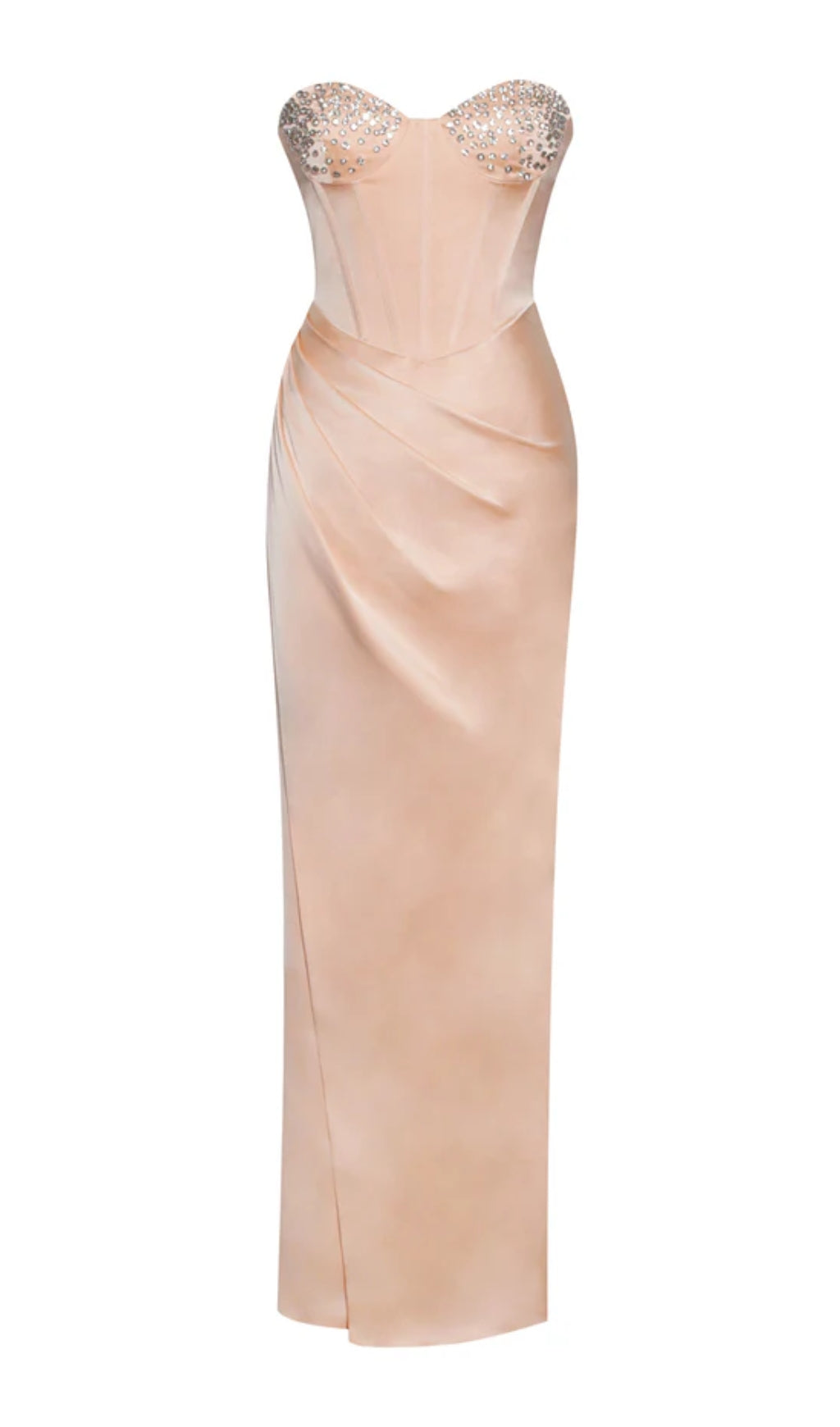 Featuring a stunning crystal embellished design. this gown will have you feeling like a glamorous queen. Plus. the corset detail cinches your waist for a flattering fit. Perfect for any special occasion. Go ahead. indulge.