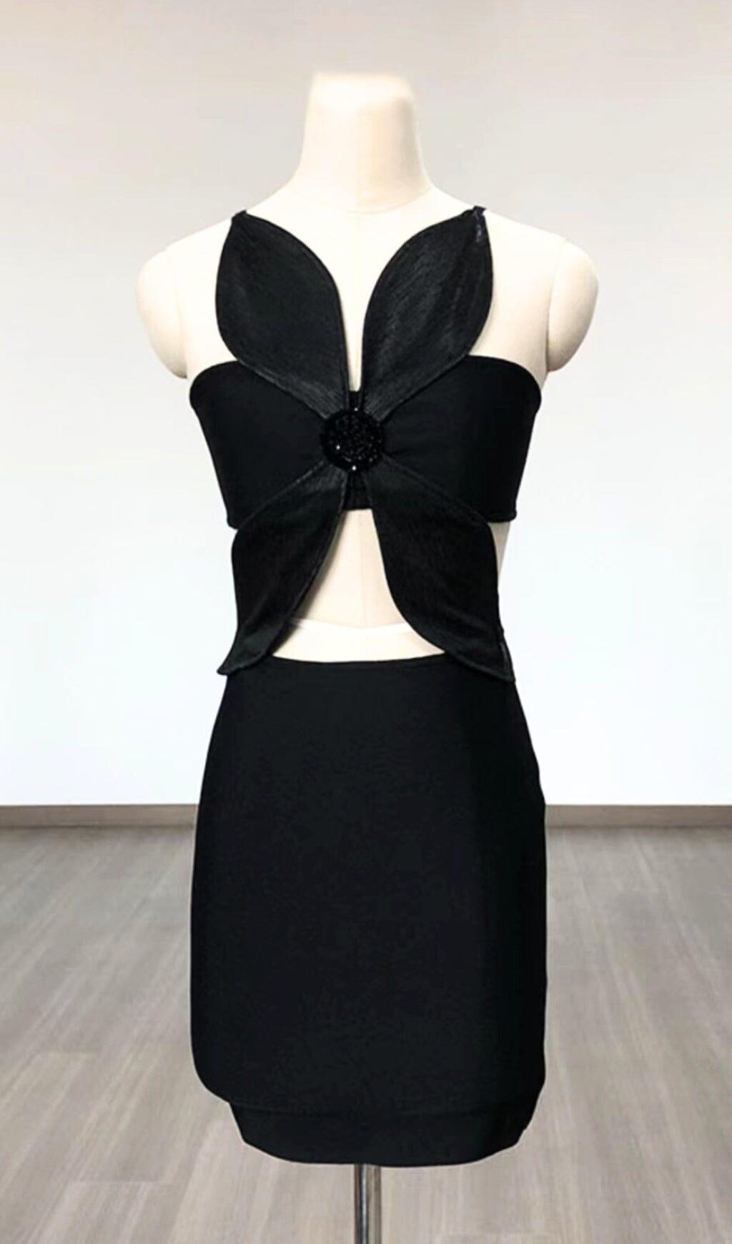Featuring a crystal-embellished floral-style upper. this mini dress is made from a satin fabric and has a zipped back.