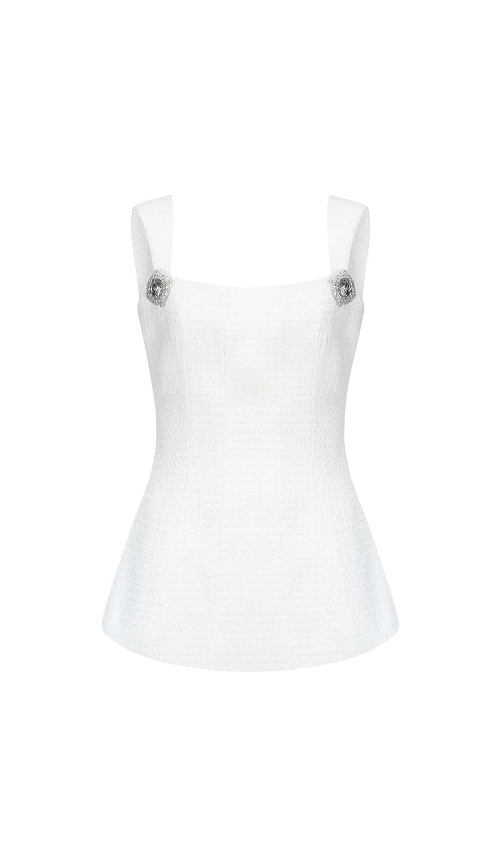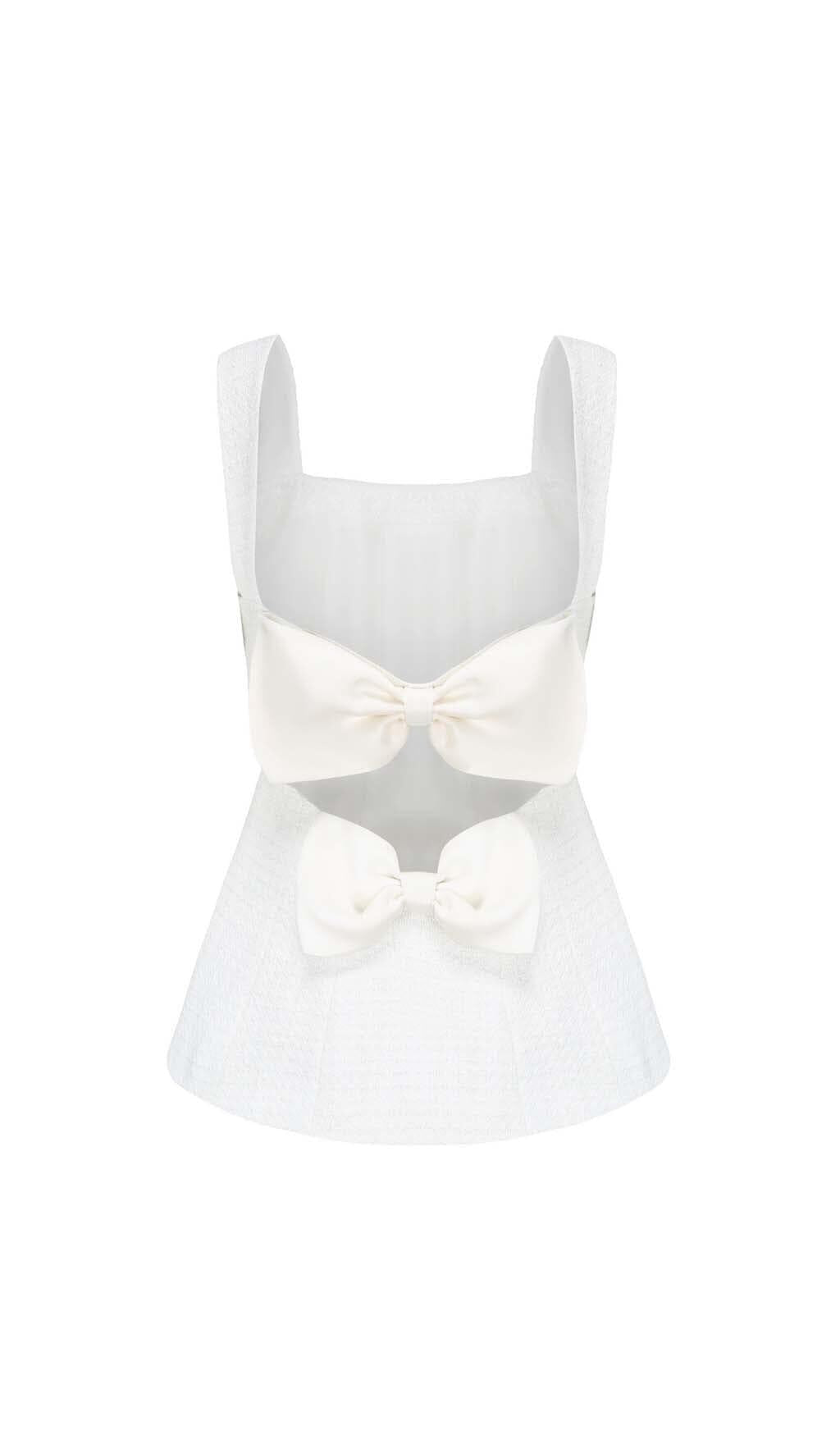 Step into the spotlight and be the best-dressed at any event with our Bow-Embellished Rhinestone Mini Dress in White. Order now and let your inner fashionista shine!