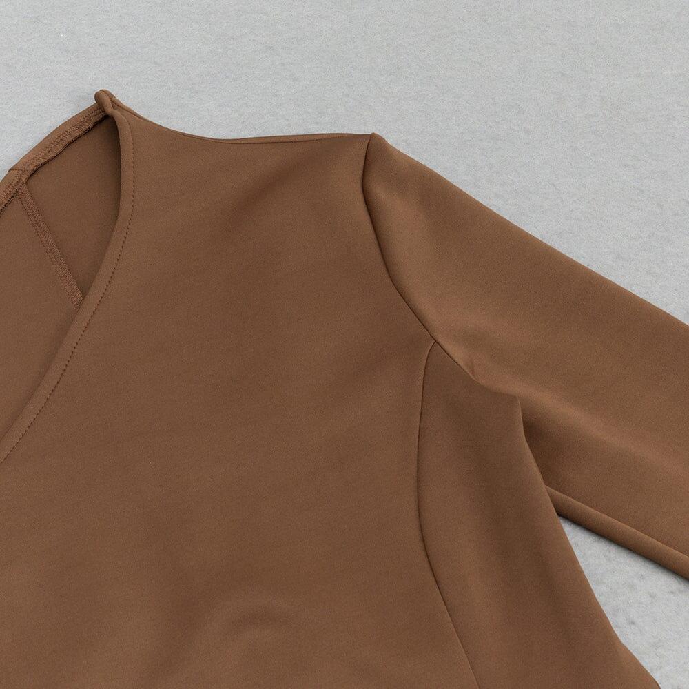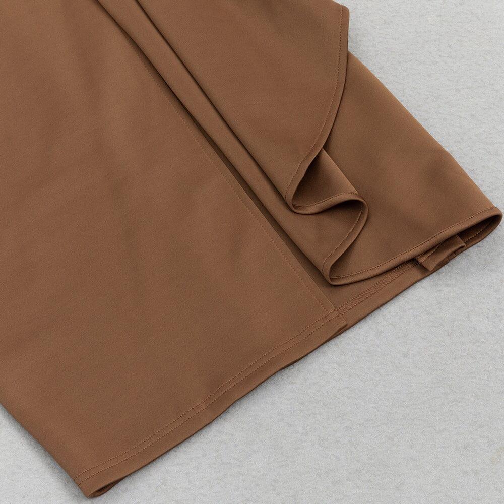 Experience the thrill of taking fashion risks with our Brown Ruffled Slit Shoulder Waist Midi Dress! The striking slit shoulder and waist ruffles add a daring touch to this dress. perfect for the bold and adventurous. Make a statement and stand out with this unique and stylish dress!