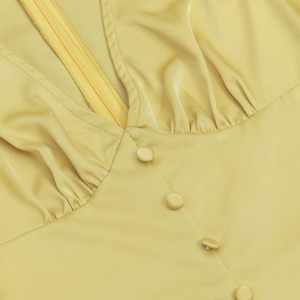 BUTTON FRONT SPLIT THIGH MIDI DRESS IN YELLOW