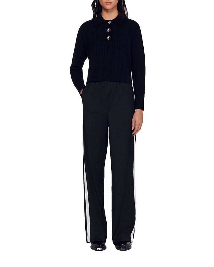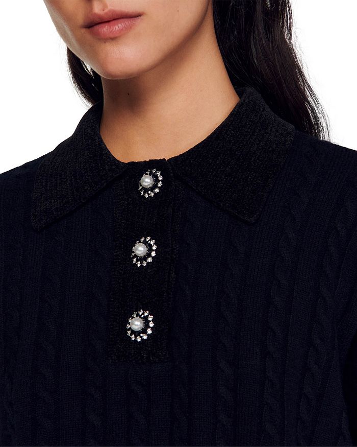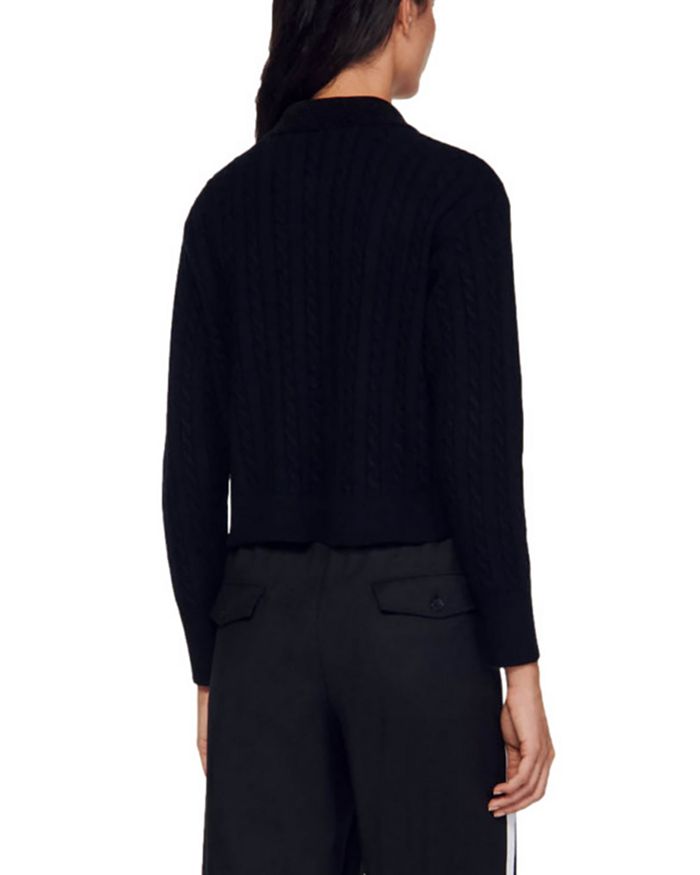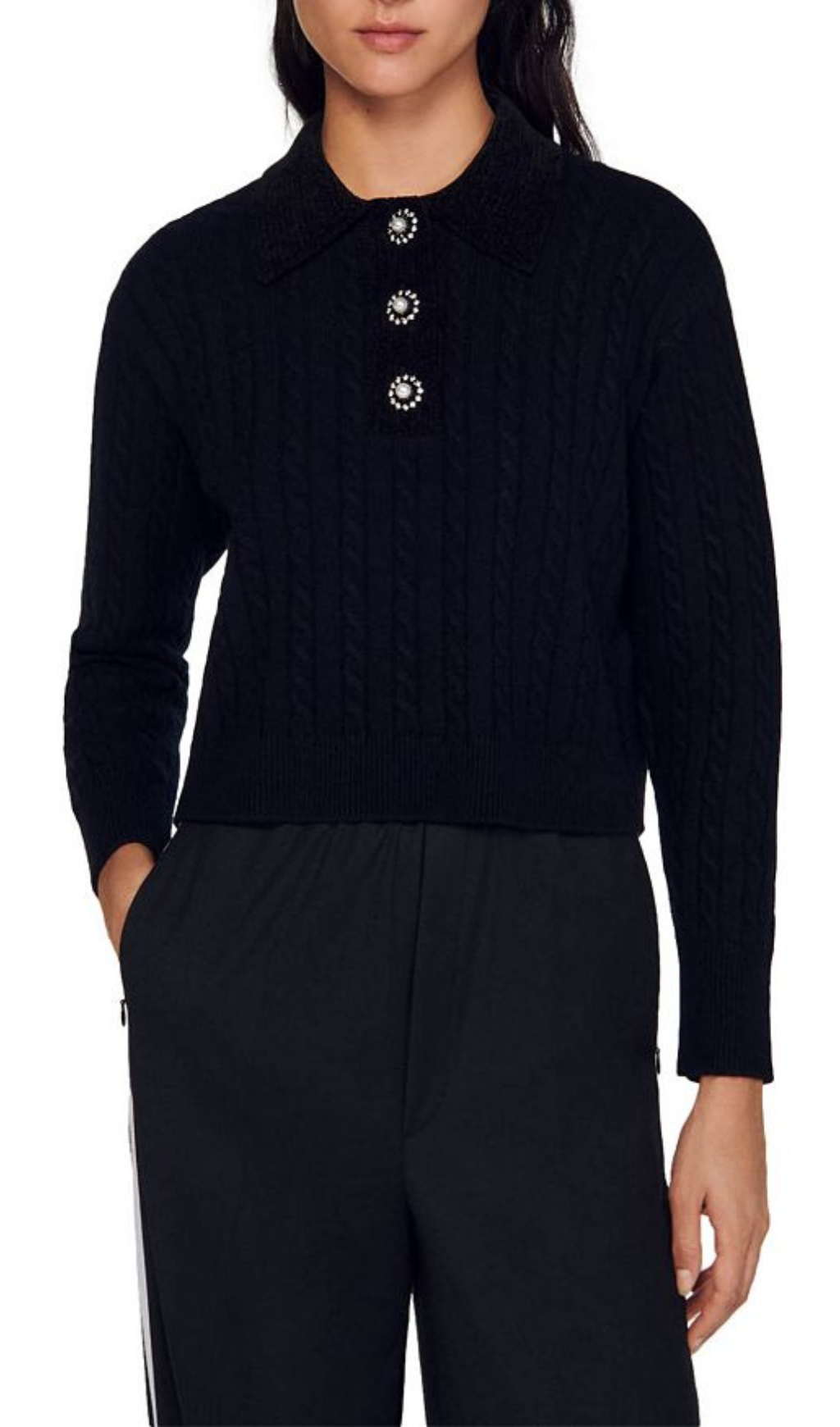 Made with intricate cable knit. this elegant piece is perfect for any occasion. The unique polo neck adds a touch of sophistication while keeping you warm and stylish. Elevate your wardrobe now with this must-have item.