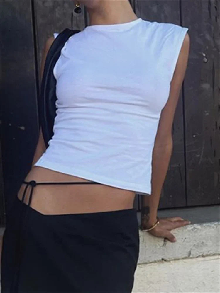 Casual Sleeveless Slim Fit Pullovers Backless Tie-up Female Base Vest Top Clubwear Crop Tops