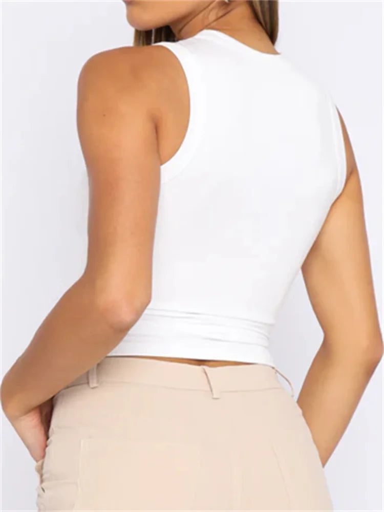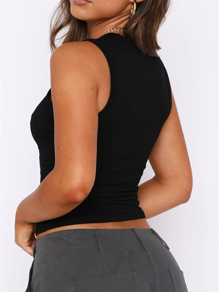 Casual Sleeveless Solid Color Slim Fit Pullovers Mini Vest Female Base Tank Tops Crop Tops