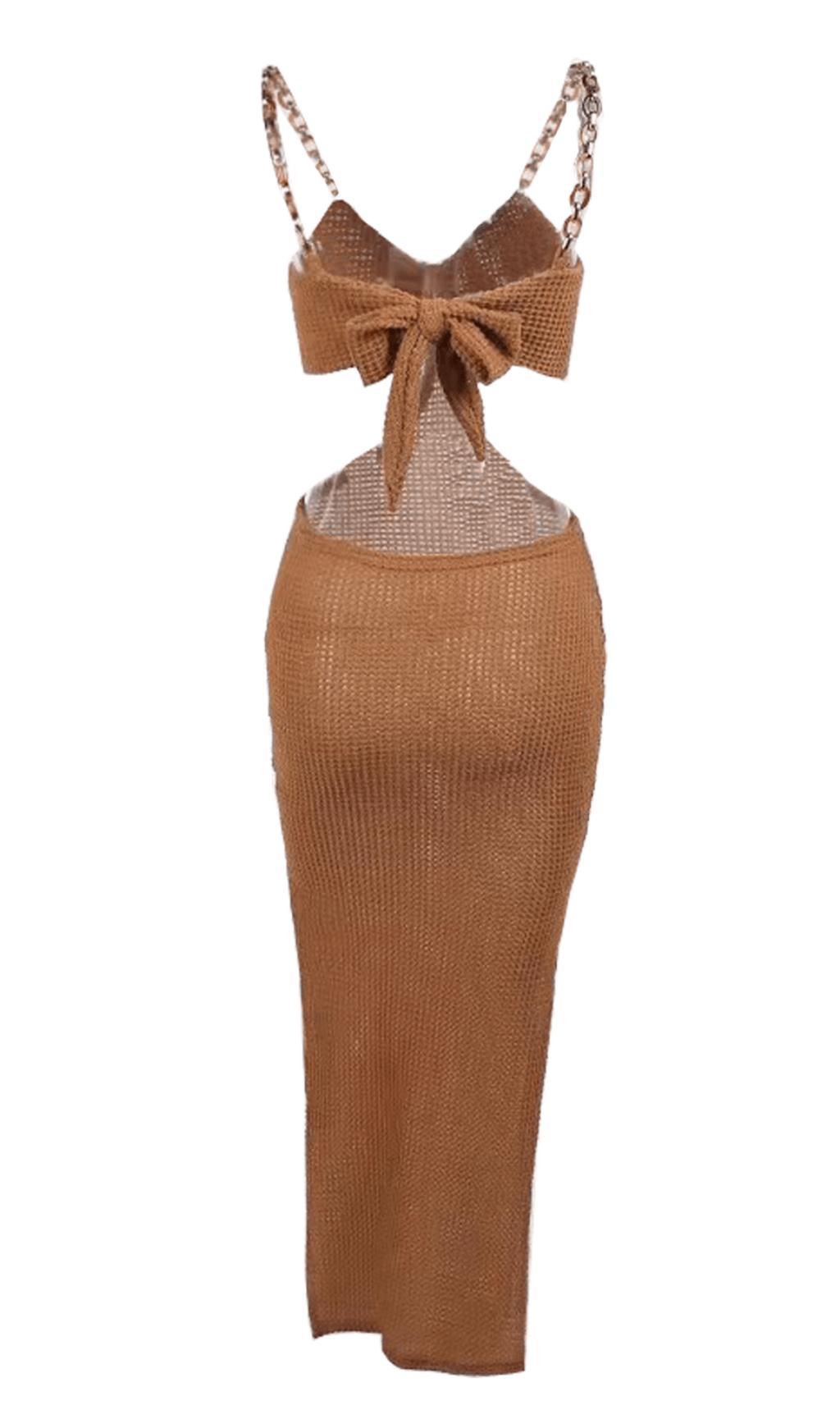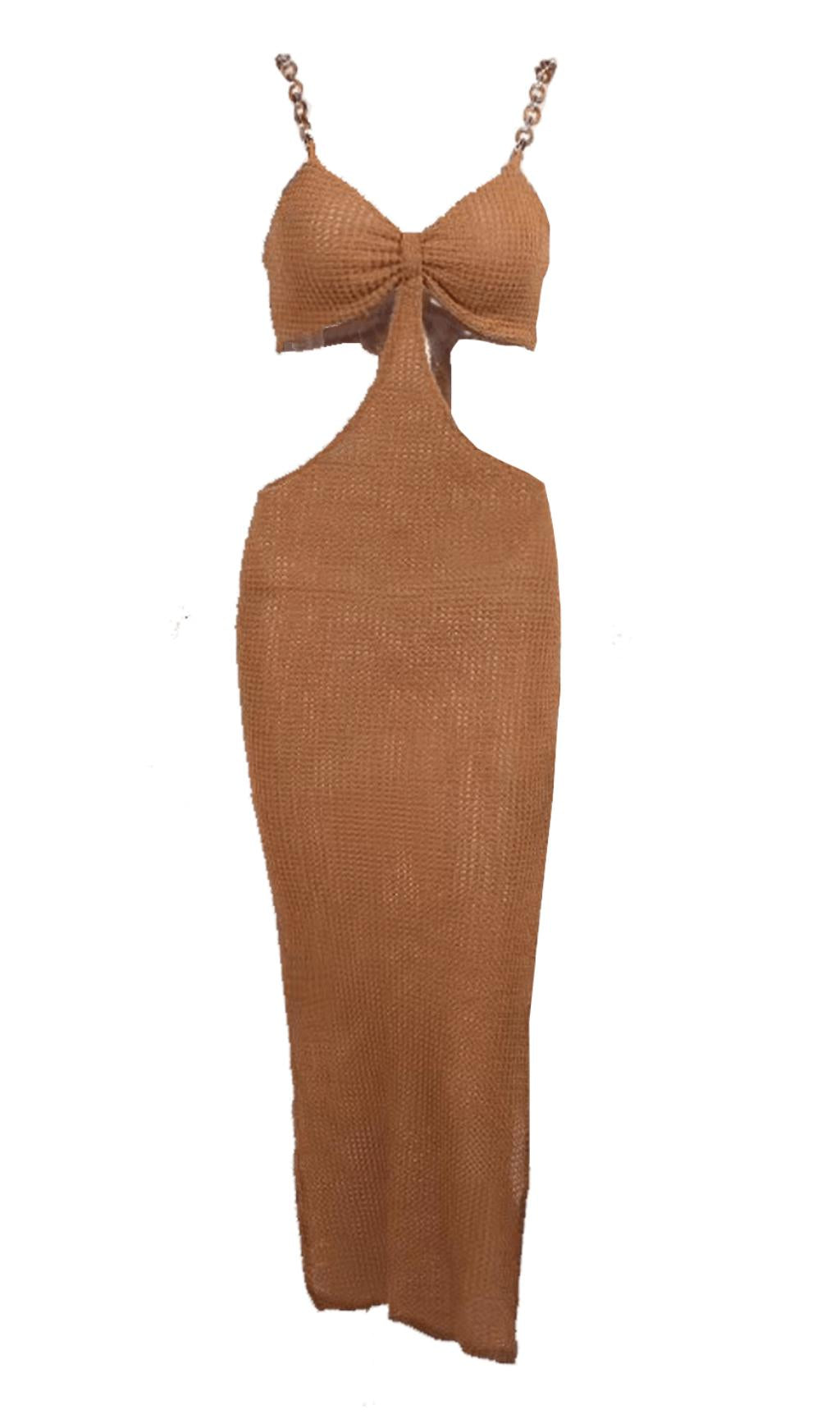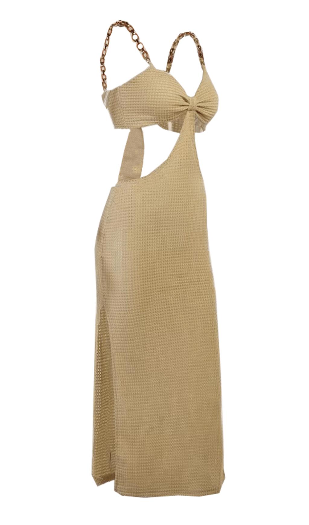 Hollow Backless Design: This dress features a stunning slit cutout design that adds a touch of boldness and edginess to your look. The chain details further enhance its unique and fashionable appeal.