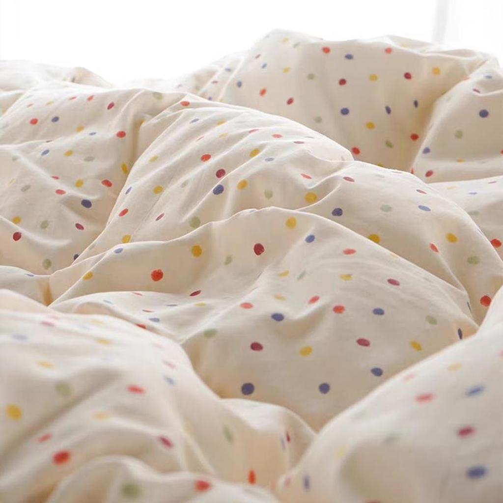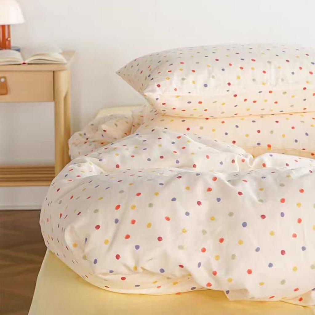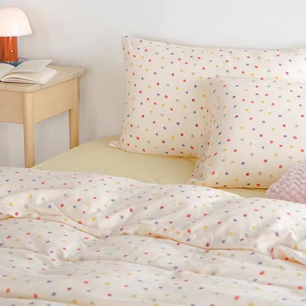 This colorful bedding set covered in colorful polka dots that instantly bring a cheerful. happy vibe to the room. The bright. lively colors make everything feel so fun. Plus. it's durable and easy to care for. so those vibrant polka dots will stay looking fresh. If you're looking to add a playful and joyful touch to your bedroom. this bedding set is an absolute must-have!