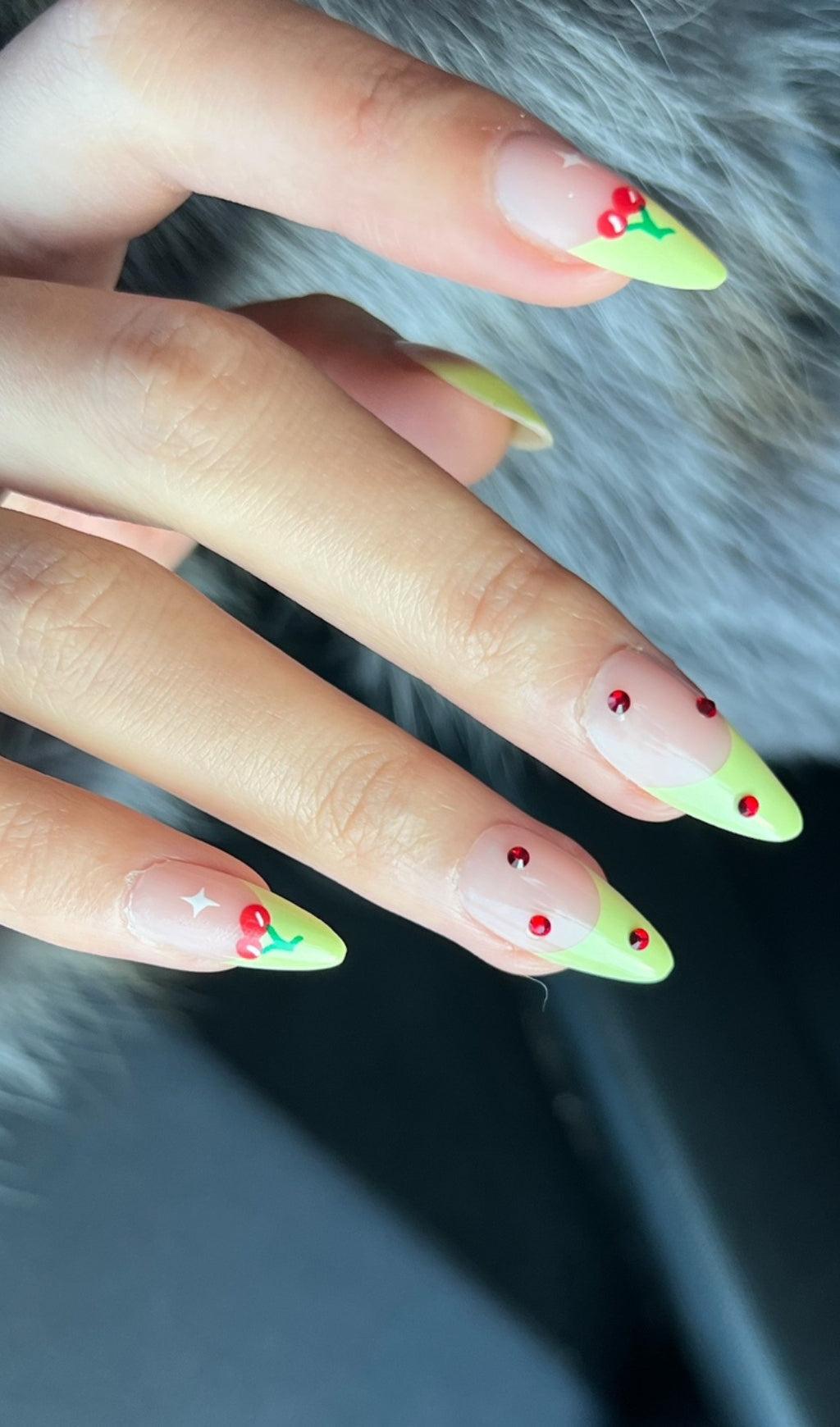 Don't settle for less when it comes to your nails. Choose the Cherry French Green Edge Press On Nails for salon-quality nails at home. Order now and experience the difference!