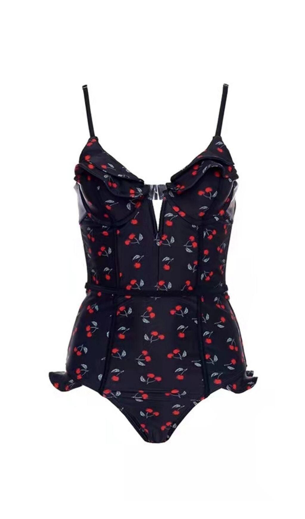 CHERRY PLUNGE SWIMSUIT - BLACK