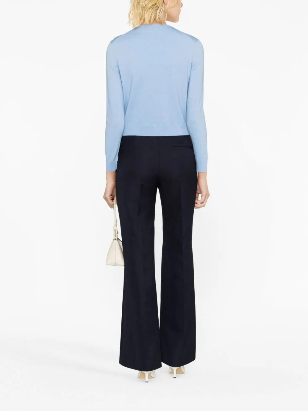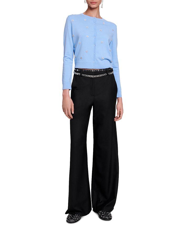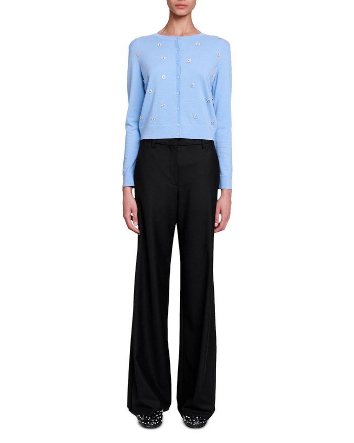 CLOVER-EMBELLISHED WOOL CARDIGAN IN BLEUS