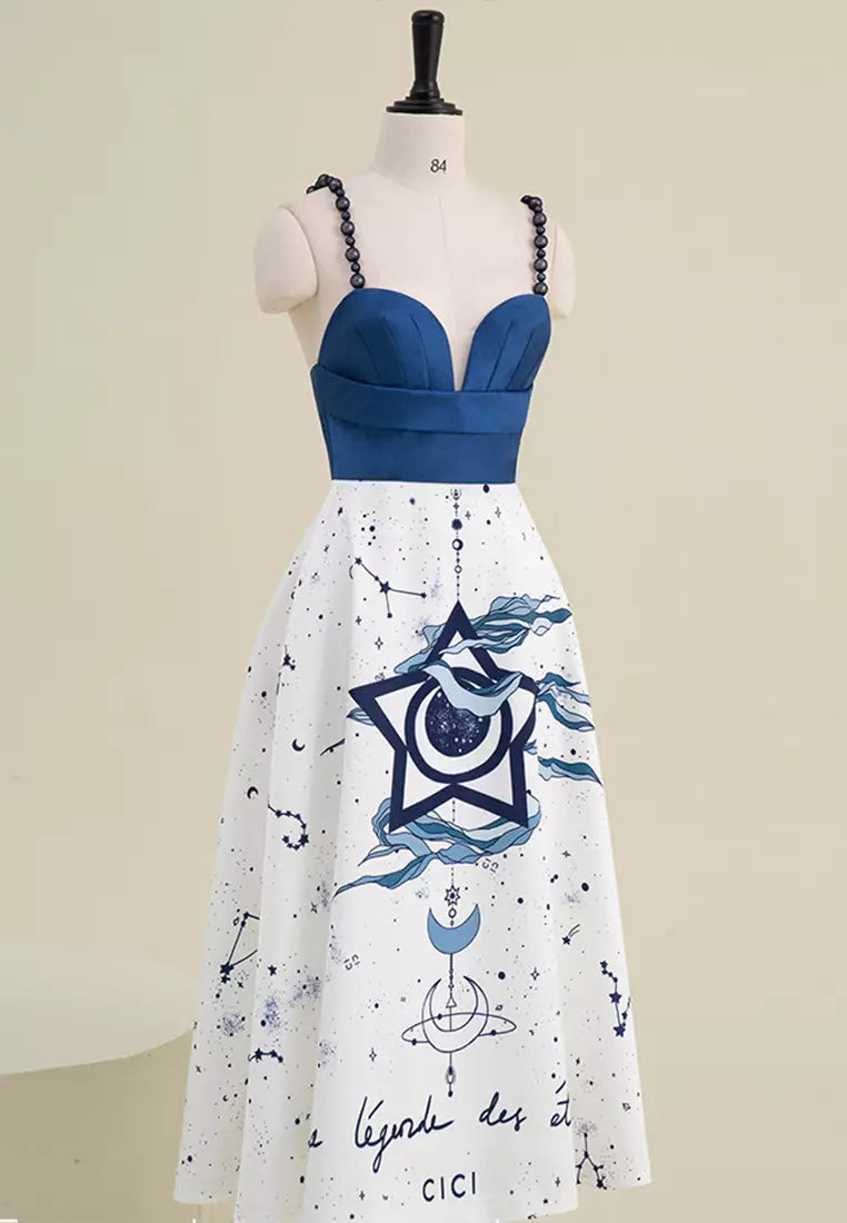 Featuring a stunning print of constellations. this dress is sure to make you stand out. Made from high-quality materials. it offers comfort and style in one.
