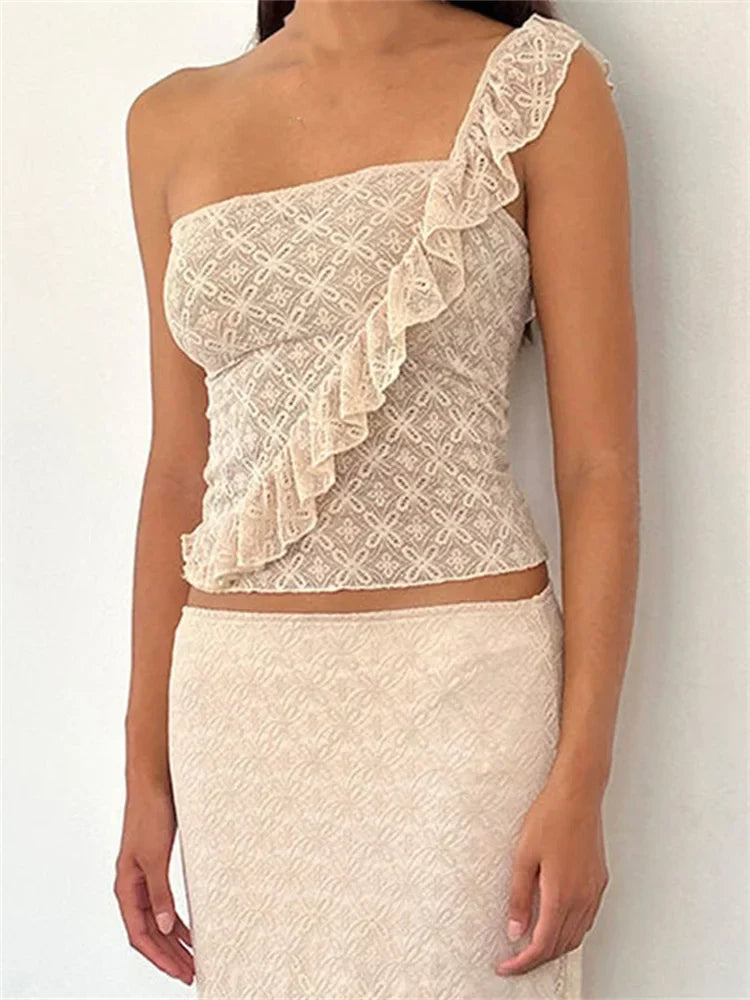 Summer Fashion Sleeveless Ruffles Off Shoulder Lace Floral Mini Party Club Cami Top