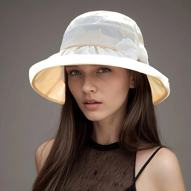 Feature : Sun protection Applicable Scene : Outdoor Applicable Season : Spring and Summer Pattern Type : Floral Style : Novelty Gender : Women Material : Silk Item Type : Sun Hats