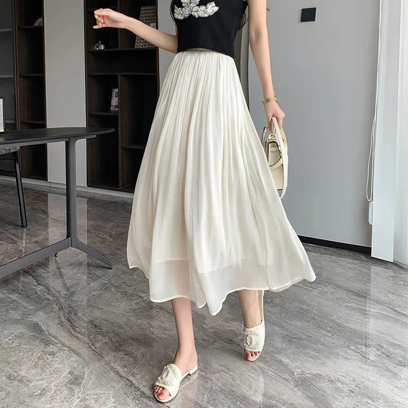 Season : Spring/Summer Fabric Type : Blended Age : Middle Age Waistline : Empire Dresses Length : Mid-Calf Silhouette : Pleated Pattern Type : Solid Style : Casual Material : Polyester Gender : Women Fit Type : Loose