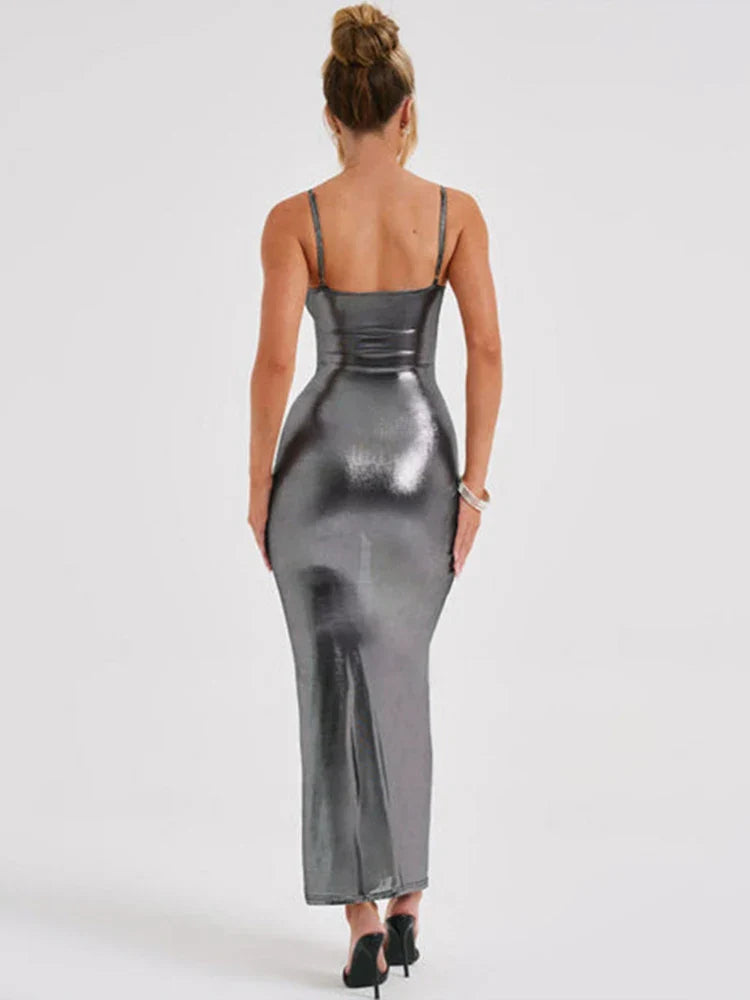Sparkle Glittar Bodycon Elegant Long Spaghetti Strap Party Maxi Dress