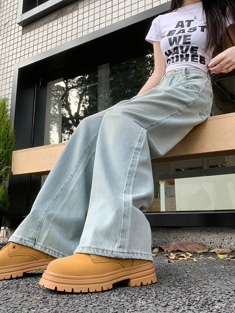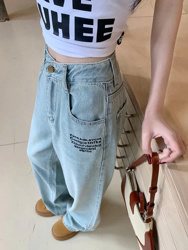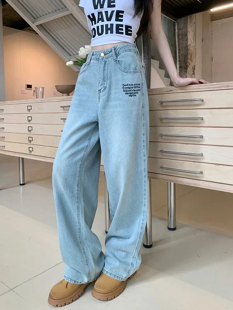 Season : All Season Release Date : 2024 Thickness : Regular Age : Junior Style : Casual Fit Type : Loose Fabric Type : Cotton Denim Waist Type : High Closure Type : Zipper Fly Wash : Light Length : Full Length Material : Cotton.Polyester Gender : Women Item Type : Jeans
