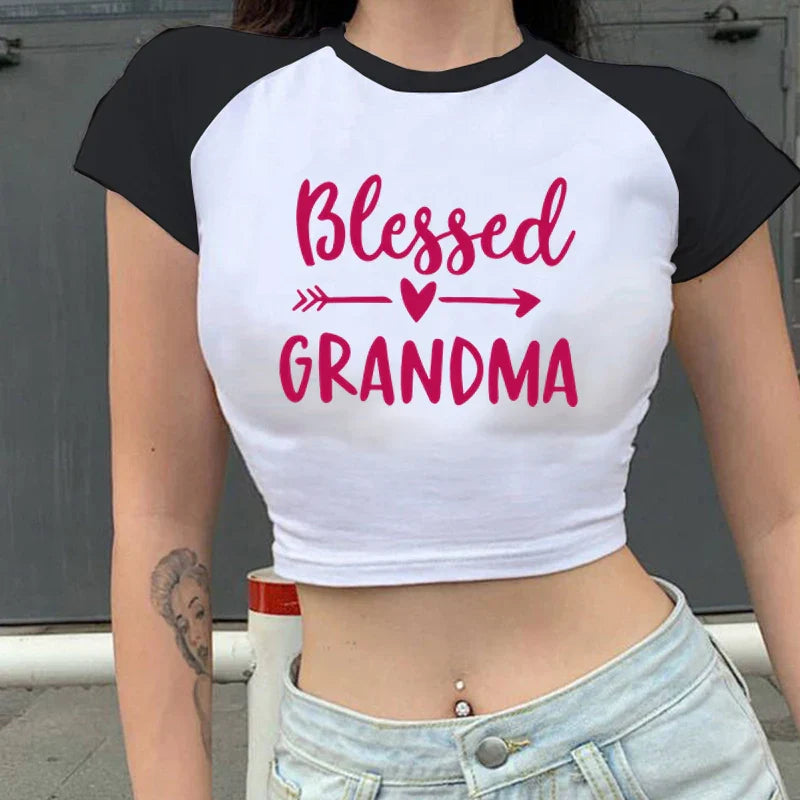 Reflective American Retro Sports Style Crop Top O-Neck Baby Tee Crop Top