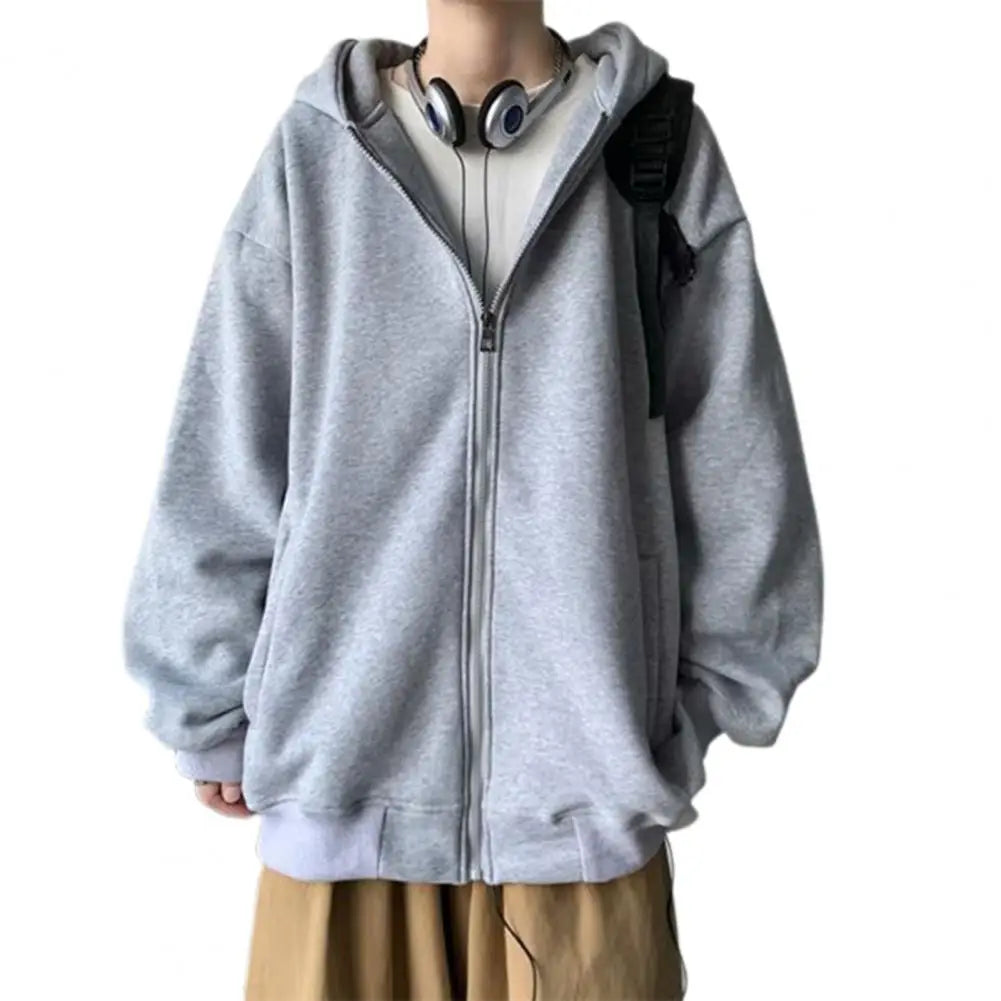 Clothes Hoodies Sweatshirt Drawstring Zip Up Drop Shoulder Streetwear Tops Coat