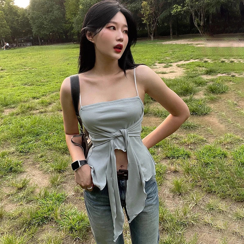 Release Date : 2024 Craft of Weaving : Knit Season : Summer Age : Junior Style : Casual Pattern Type : Solid Clothing Length : Regular Tops Type : Camis Fabric Type : Knitted Material : Polyester.Spandex Gender : Women Item Type : Tops Elasticity : High Strecth