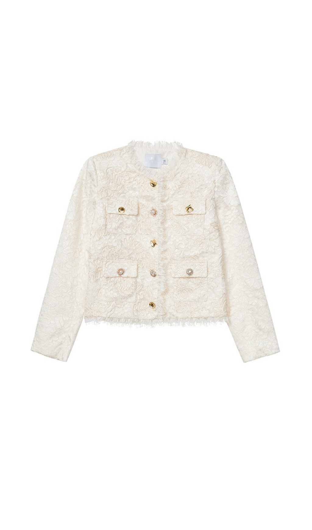 With its delicate lace detailing and playful design. this jacket is sure to make a statement. Perfect for any occasion. dress it up or down for a dose of unique style."