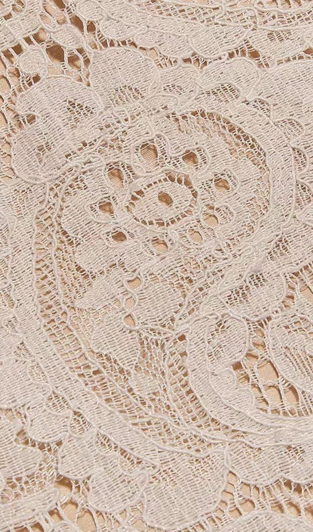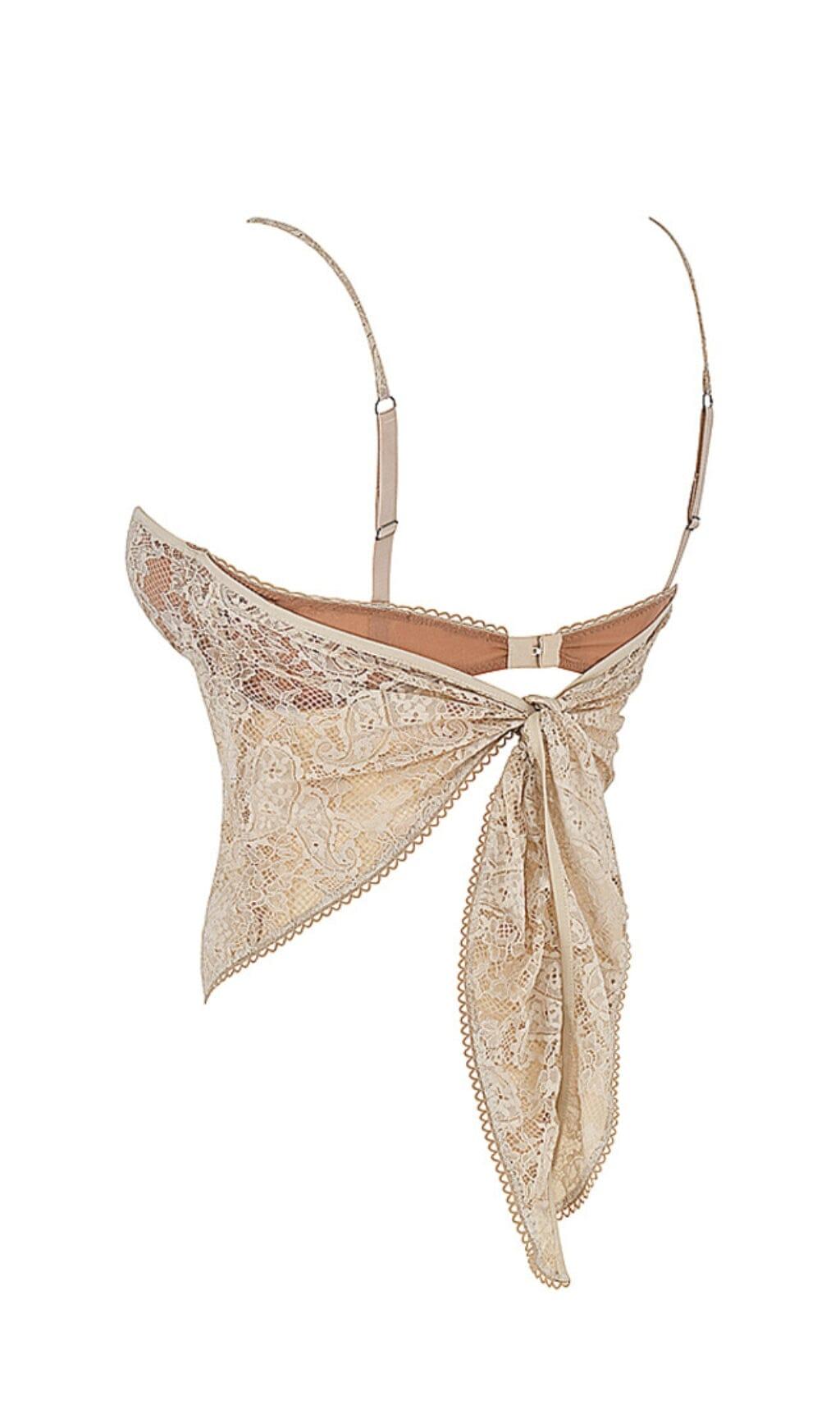 Experience romance and elegance with our Cream Paisley Lace Top. Crafted from delicate and dainty lace. this top is designed to make you feel beautiful and confident. It features a flattering handkerchief hem that dips at the front. highlighting the narrowest part of your waist before tying in a knot at the back.